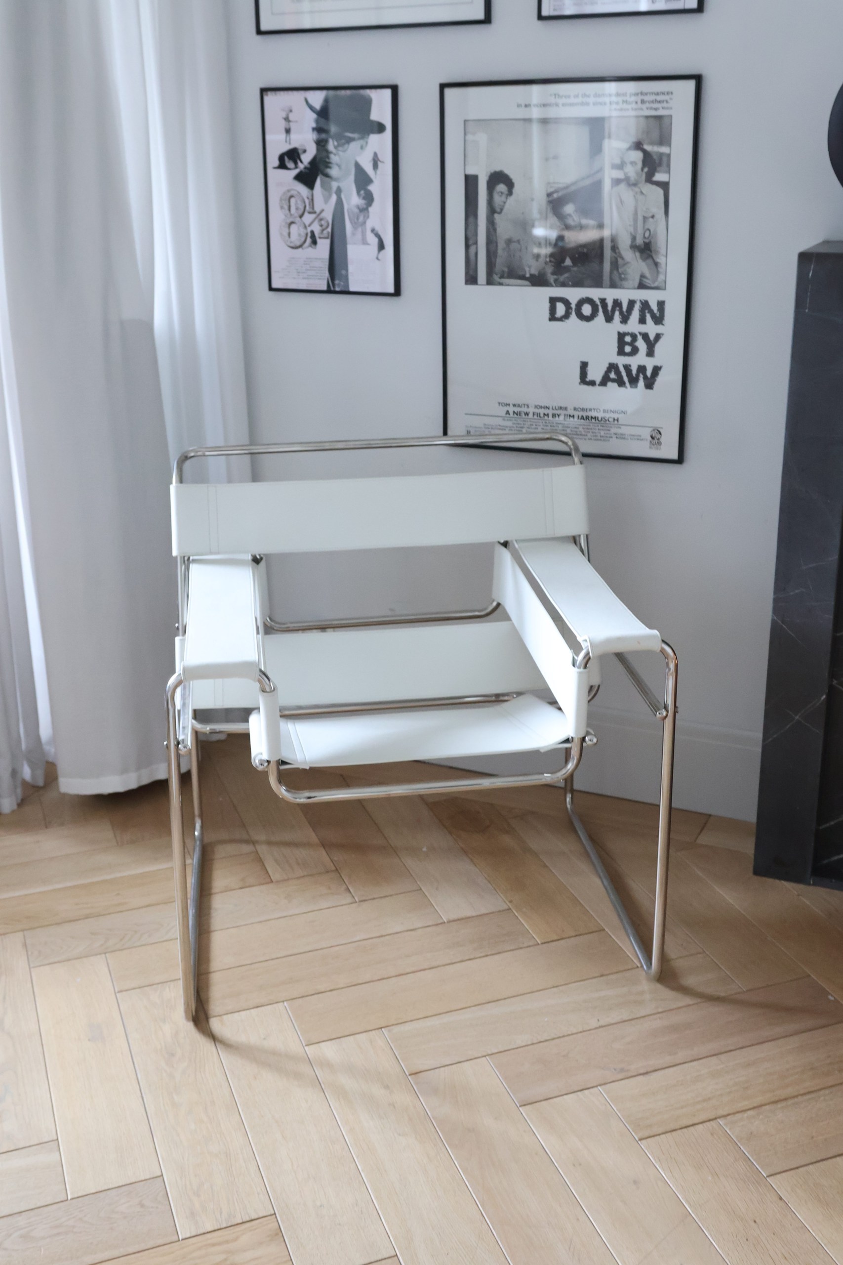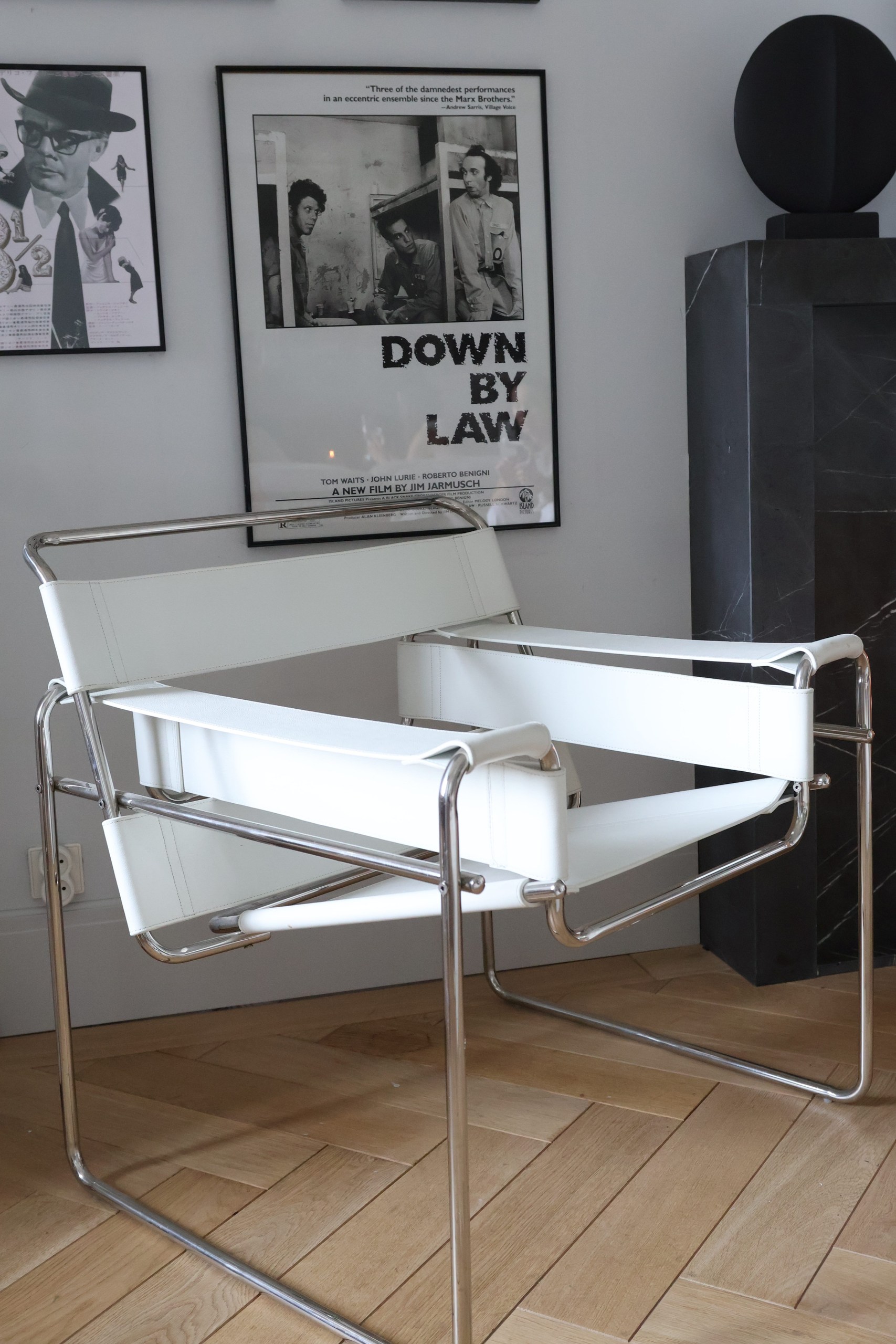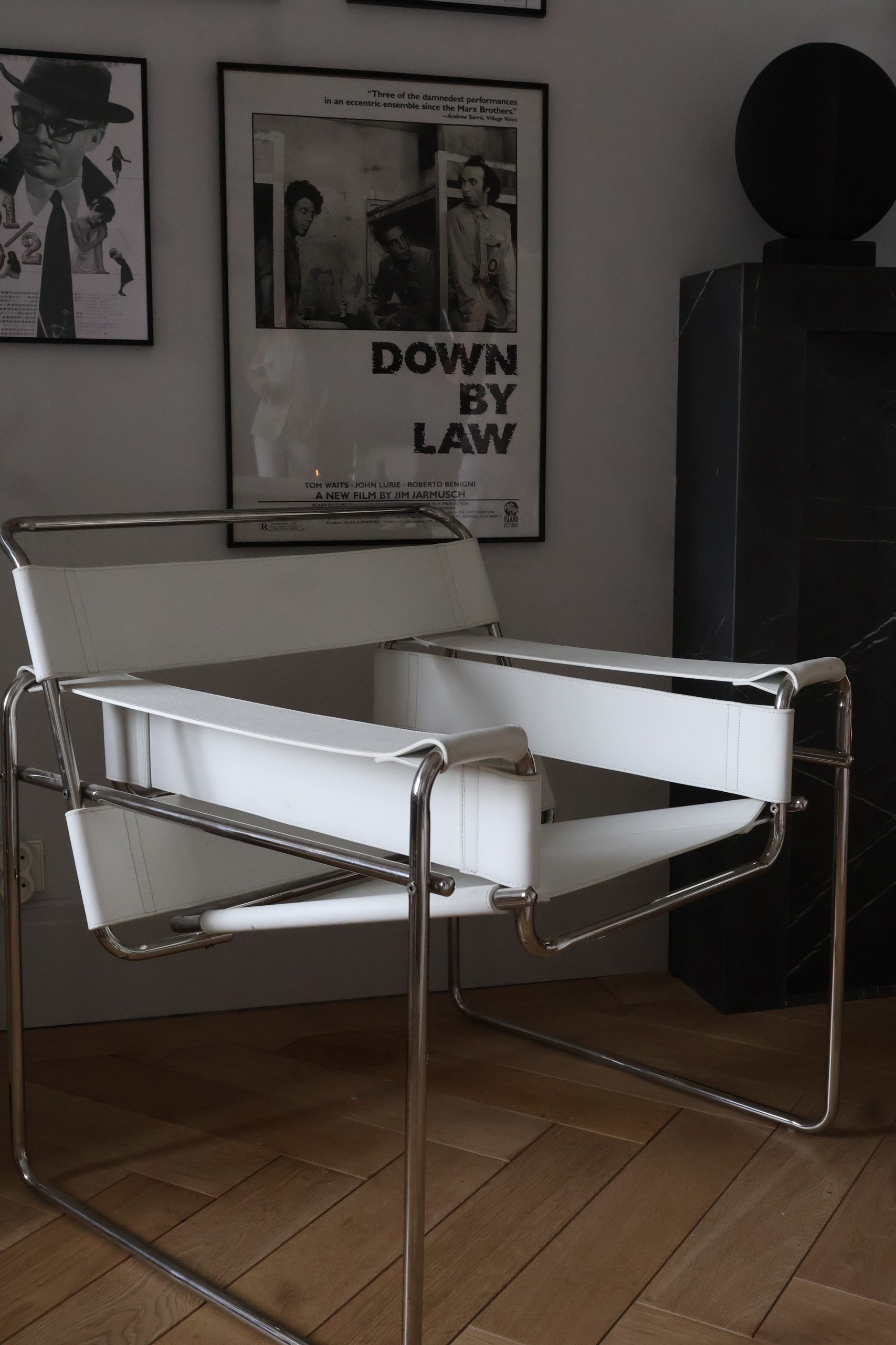 Jego unikalna budowa składa się z charakterystycznej stalowej ramy, która tworzy jednocześnie podstawę, oparcie i podłokietniki.