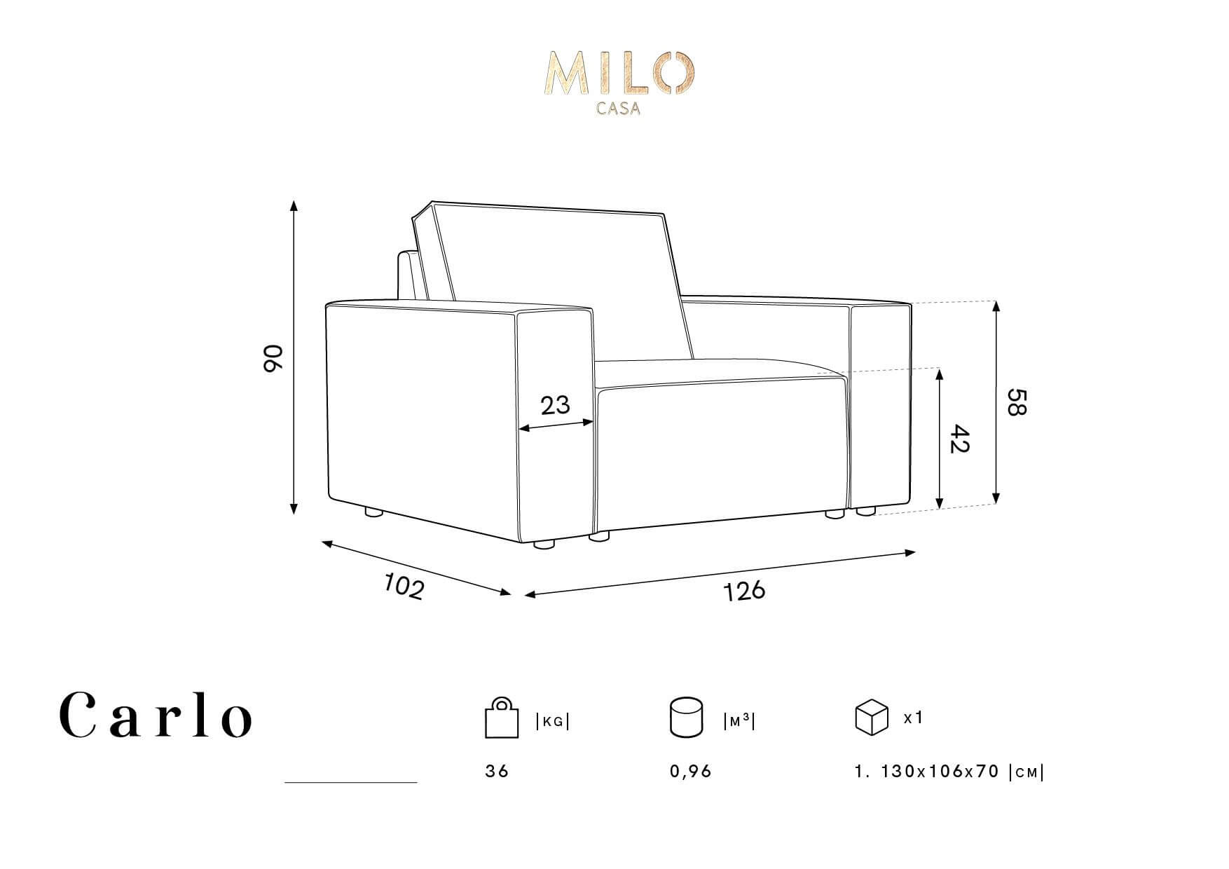 Szary fotel Carlo to mebel cechujący się geometryczną bryłą i jednocześnie wysokim komfortem wypoczynku. Forma oraz jakość wykonania fotela składa się na mebel pełen estetyki i elegancji.