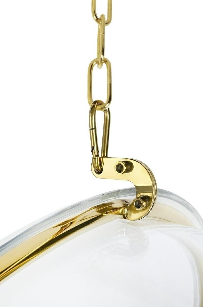 Fotel wiszący Bubble Gold Velvet to połączenie elegancji, nowoczesnego wzornictwa i wyjątkowego komfortu. Wykonany z transparentnego akrylu, tworzy lekką, niemal futurystyczną formę, która efektownie prezentuje się w każdej aranżacji – od nowoczesnych wnętrz po przestrzenie glamour.