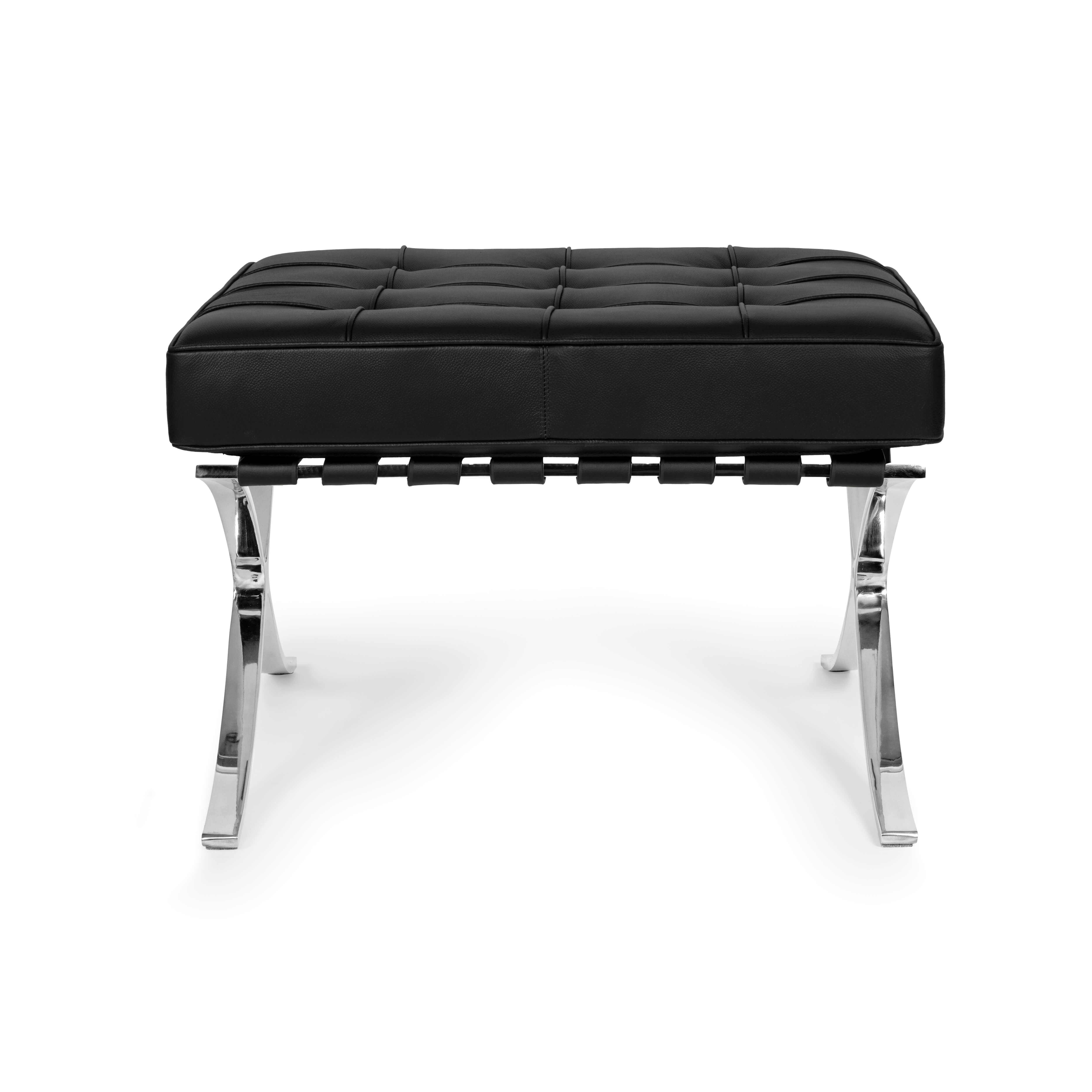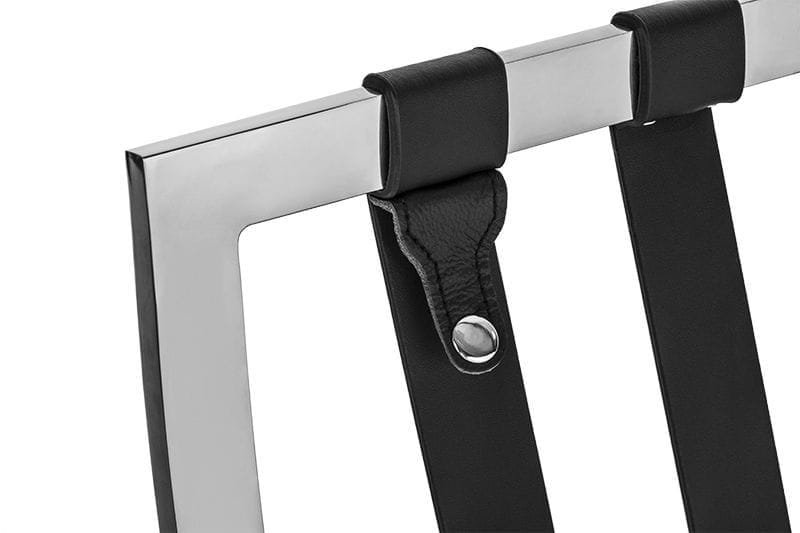 Siedzisko opiera się na metalowej ramie wykonanej ze stali, która swym kształtem przypomina literę X. Metalowa konstrukcja chromowana jest na wysoki połysk, zapewniając nie tylko solidność, ale także nowoczesny i designerski wygląd.