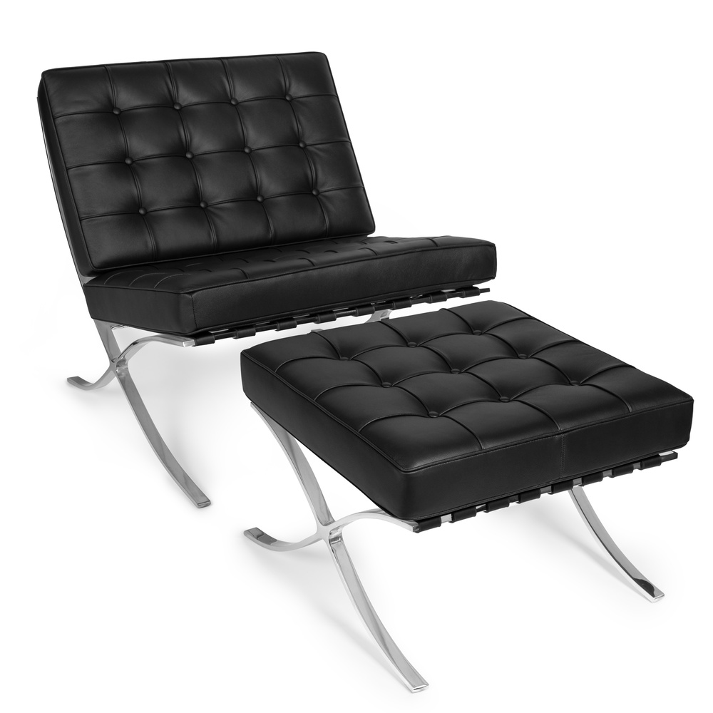 Fotel z podnożkiem Prestige czarna skóra naturalna