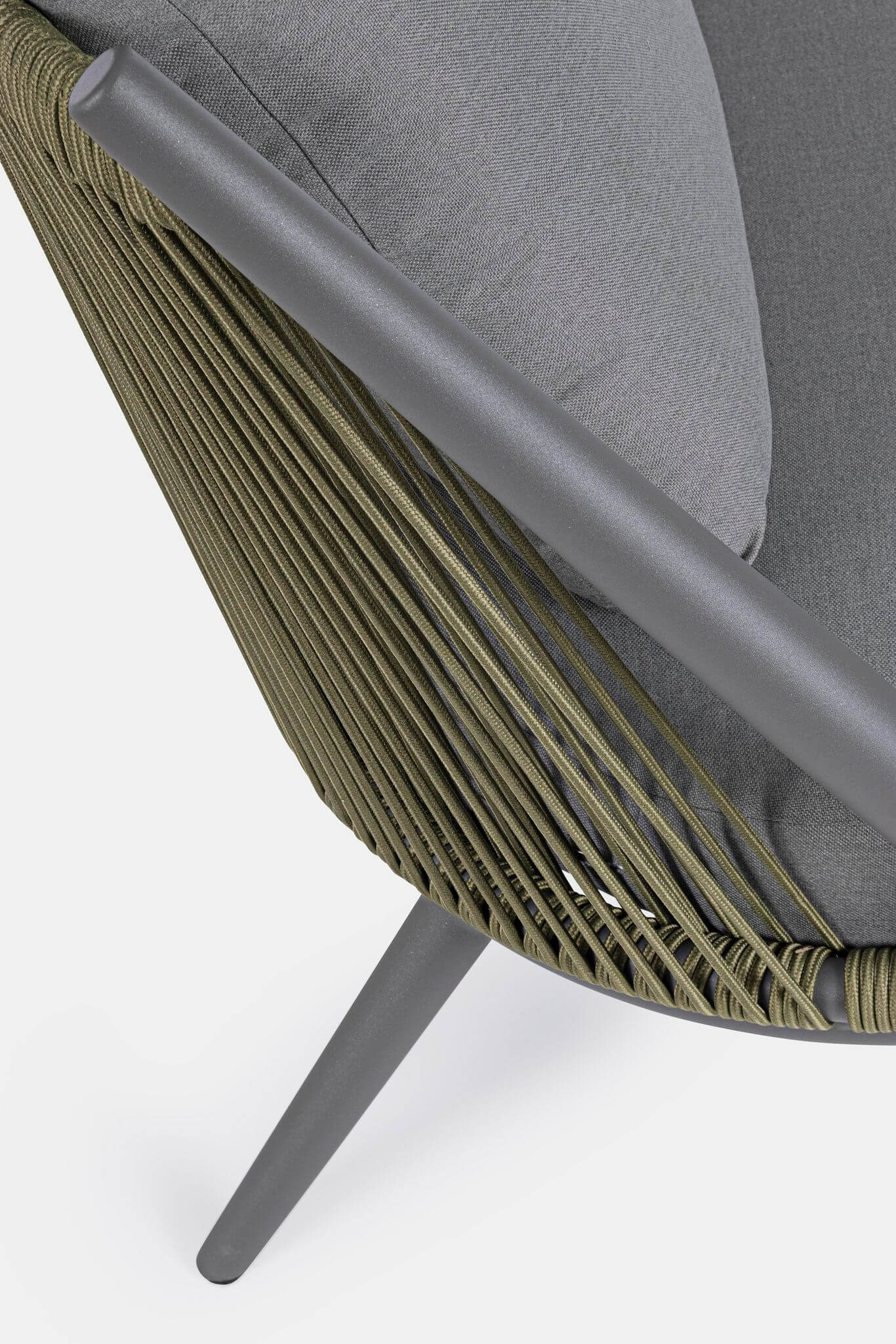 Mebel ogrodowy został wykonany z materiałów, które cechują się wysoką odpornością na warunki atmosferyczne. Fotel posiada ramę wykonaną z malowanego proszkowo aluminium. Oparcie tworzą odpowiednio naciągnięte paski poliestrowe. Pokrowce poduszek także wykonane są z poliestru. Można je łatwo zdjąć i wyprać.