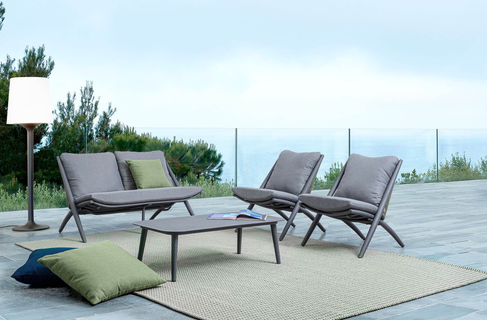 Nowoczesna sofa Aloha na strunach, która stylowo zaprezentuje się w przestrzeni outdoorowej - w ogrodzie, na tarasie, werandzie lub balkonie. Zaprojektowana przez włoską markę Bizzotto