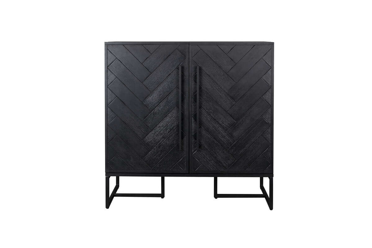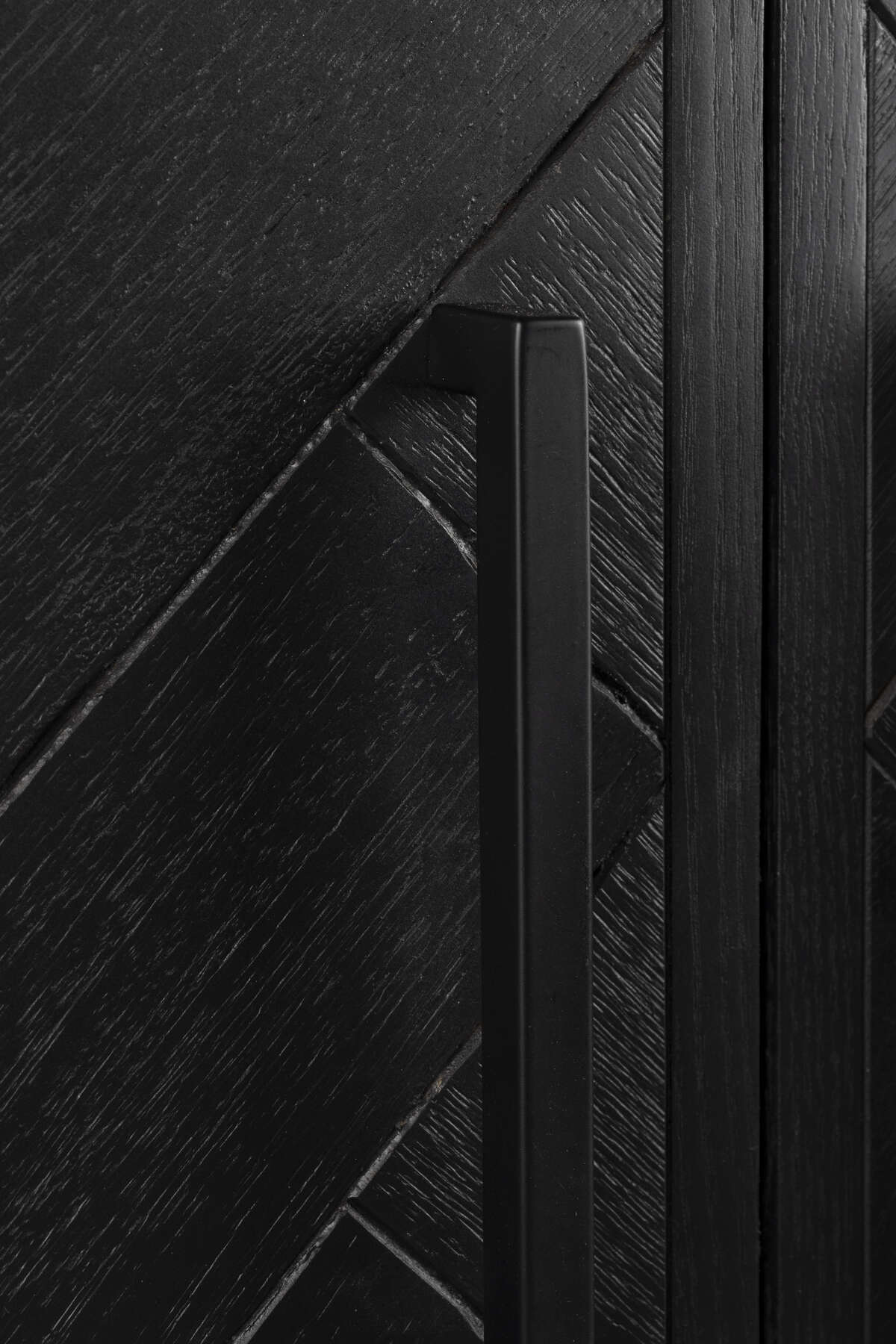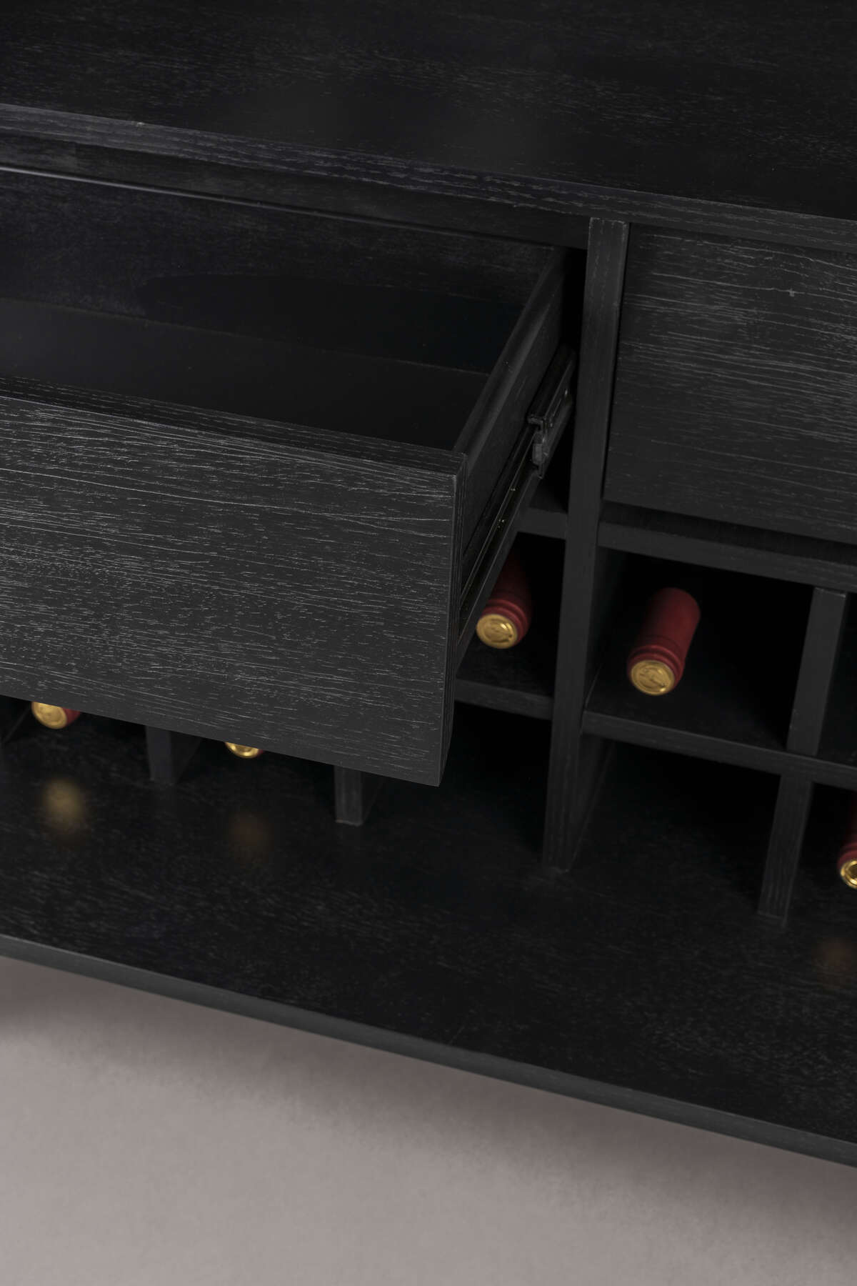 Czarny Gabinet Class - pojemny, stylowy i funkcjonalny mebel wnętrza. Idealny do pomieszczeń w stylu chińskim, vintage czy loftowym. Spełni się jako szafka i komoda barowa dzięki wyposażeniu bogatym w przegródki na butelki, uchwyty na kieliszki, czy też boczne pojemne miejsca o dowolnym przeznaczeniu. Gabinet wykończony wzorem w jodełkę, który nadaje mu ponadczasowości i niezwykłej elegancji. Design i szerokie zastosowanie mebla przypadnie do gustu nie tylko wielbicielom wina. Świetnie sprawdzi się w salonie, jadalni czy piwniczce.
