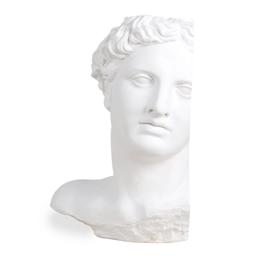Gipsowa statua Apollo holenderskiej marki HKliving. Stylowy posąg wzorowany na głowę mitycznego Apollo. Apollo był najprzystojniejszym bogiem spośród mężczyzn. Smukły, o marzącym czole, nad którym piętrzyły się loki, onieśmielał jarzącym spojrzeniem swych oczu. Gipsowa statua we wnętrzu doda mu elegancji, a jednocześnie może stać harmonijnym kontrastem dla całego wystroju.