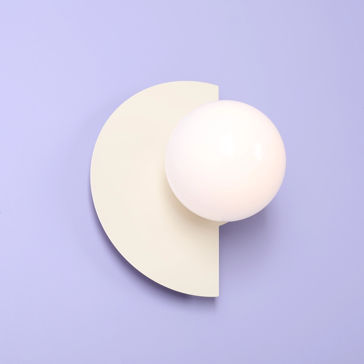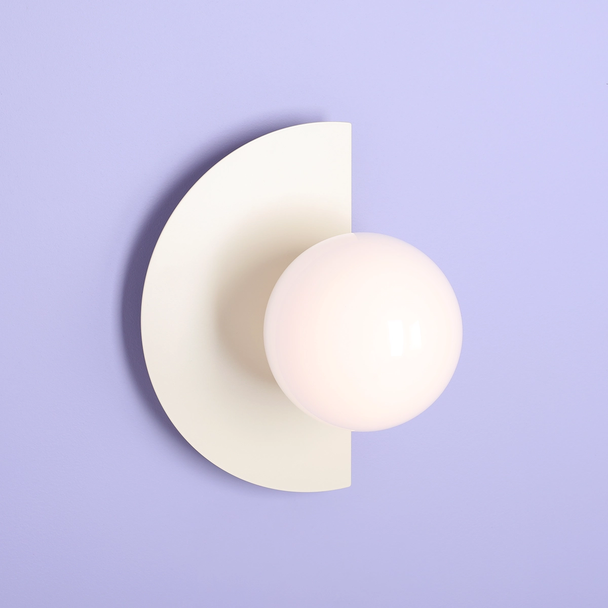 Kinkiet LOOP wykonany jest z trwałych i eleganckich materiałów: malowanego proszkowo metalu oraz mlecznego szkła, które delikatnie rozprasza światło. Charakterystyczny półokrągły tył zestawiony z centralnie osadzoną świetlną kulą tworzy minimalistyczną, a zarazem niezwykle efektowną kompozycję.