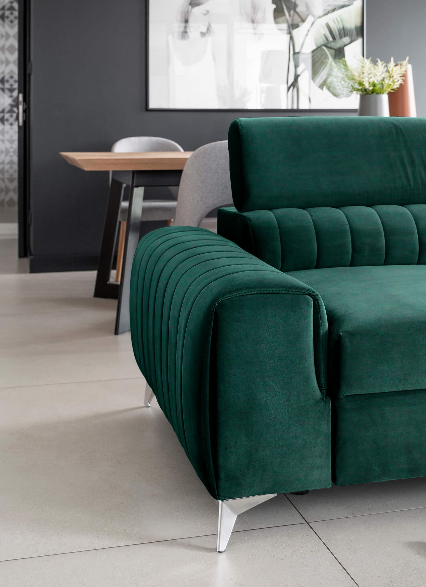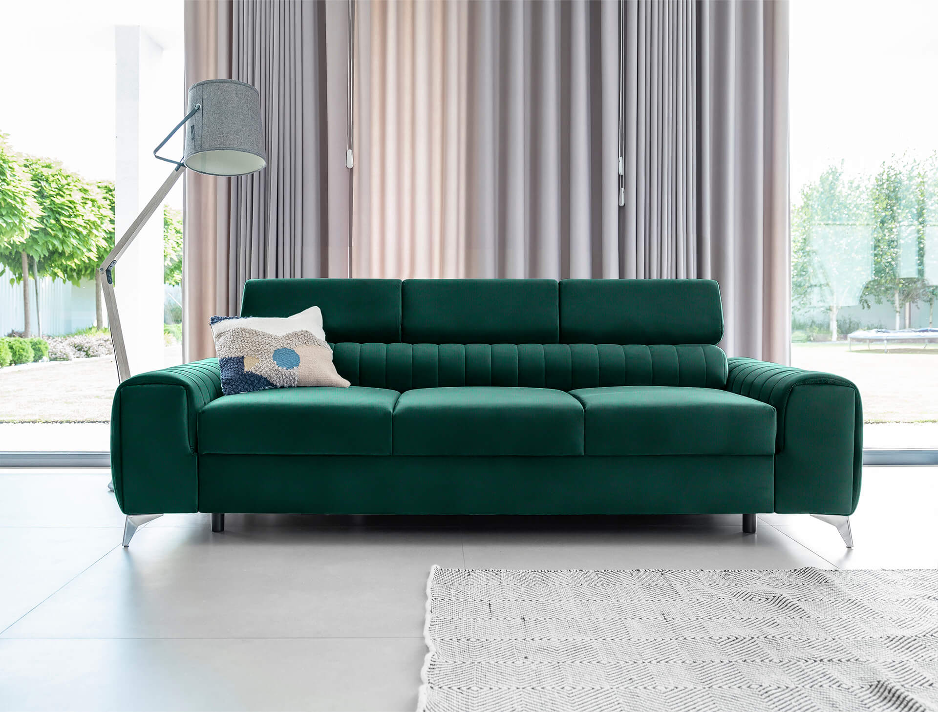 Rozkładana kanapa Lorence wprowadza do wnętrza lekkość i elegancję. Klasyczną bryłę mebla przełamują przeszycia i wyraźnie podkreślony podział mebla na trzy wyodrębnione siedziska.