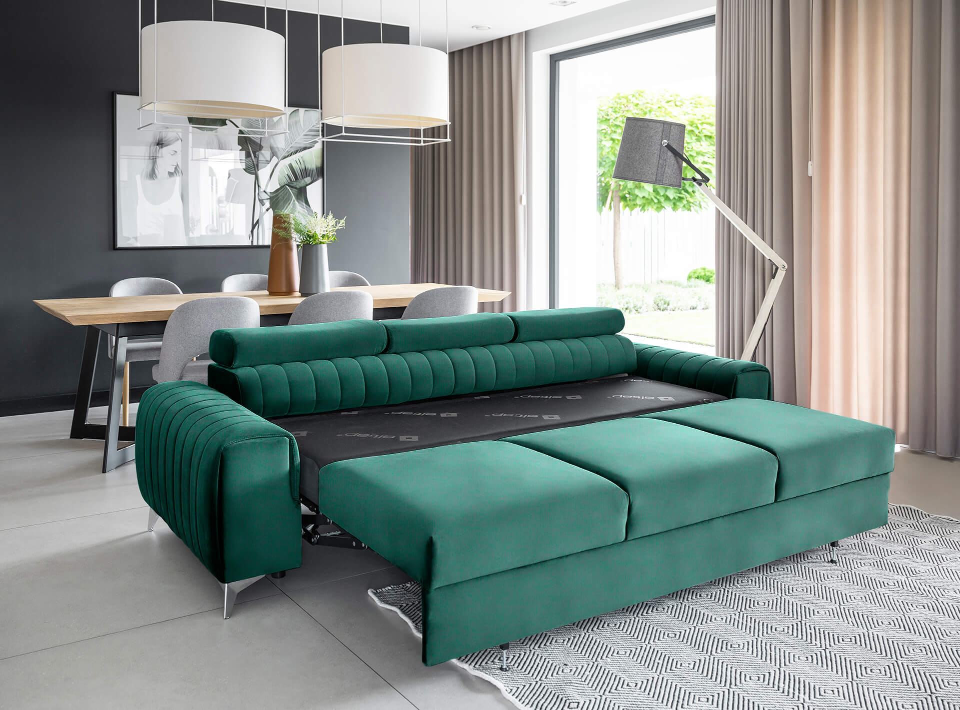 Kanapa rozkładana Lorence butelkowa zieleń