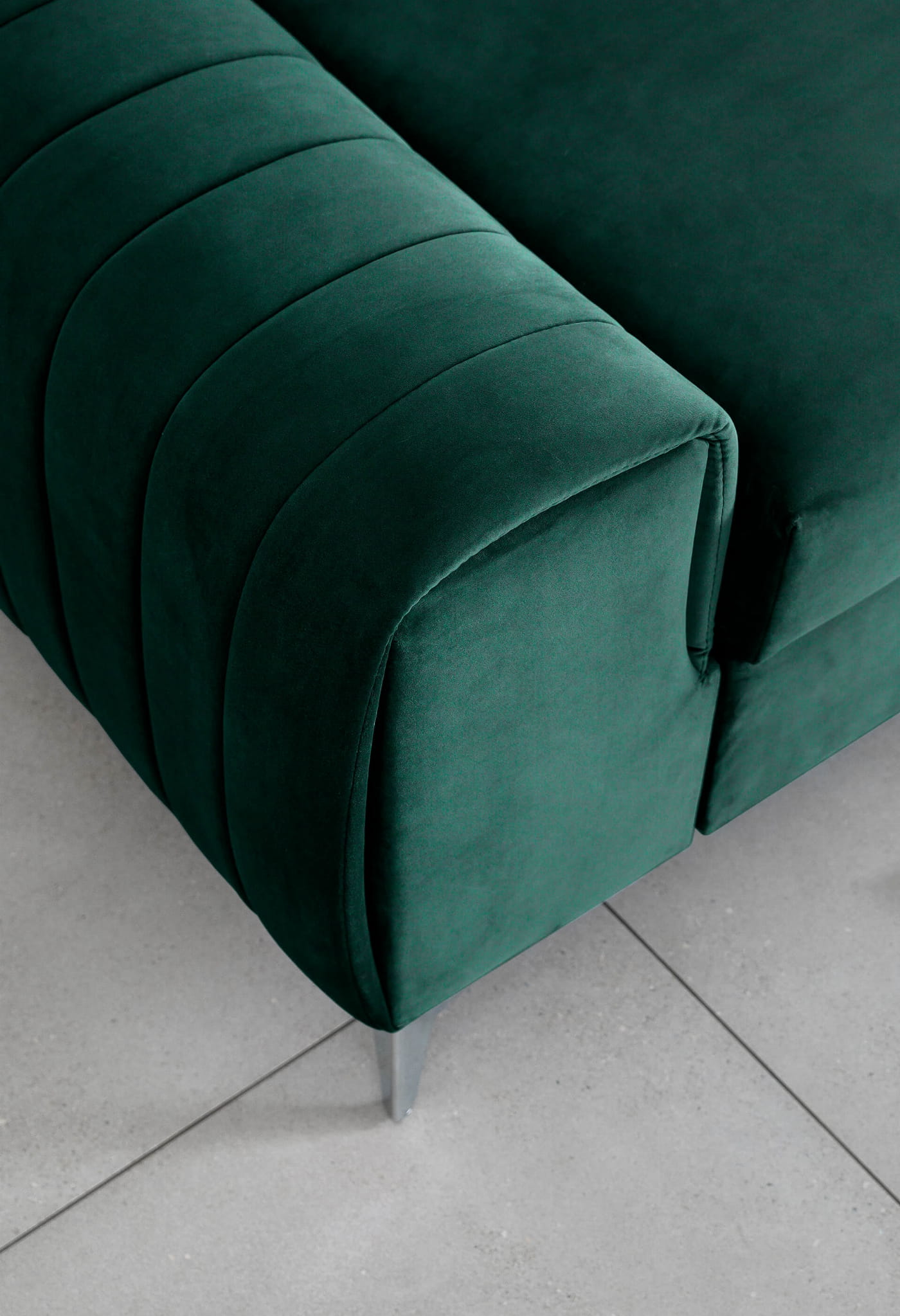 Sofa Lorence w kolorze butelkowej zieleni to idealny wybór do nawet niewielkiego salonu, jej wymiary to: 261x97x75 cm.