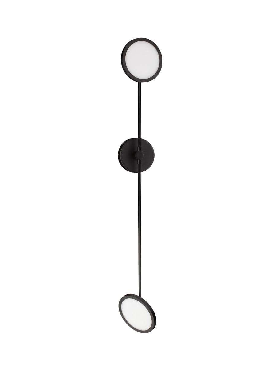 Kinkiet Abot wykonany został z metalu i ma formę dwóch prostych rur, zakończonych płaskimi, ledowymi kloszami. Klosze przypominają spłaszczone dyski i od spodu pokryte zostały trwałym akrylem, tworząc solidne wykończenie. Przez zastosowanie rurek o różnych długościach, kinkiet Abot tworzy asymetryczną konstrukcję, która na ścianie z pewnością będzie ciekawym elementem dekoracyjnym.