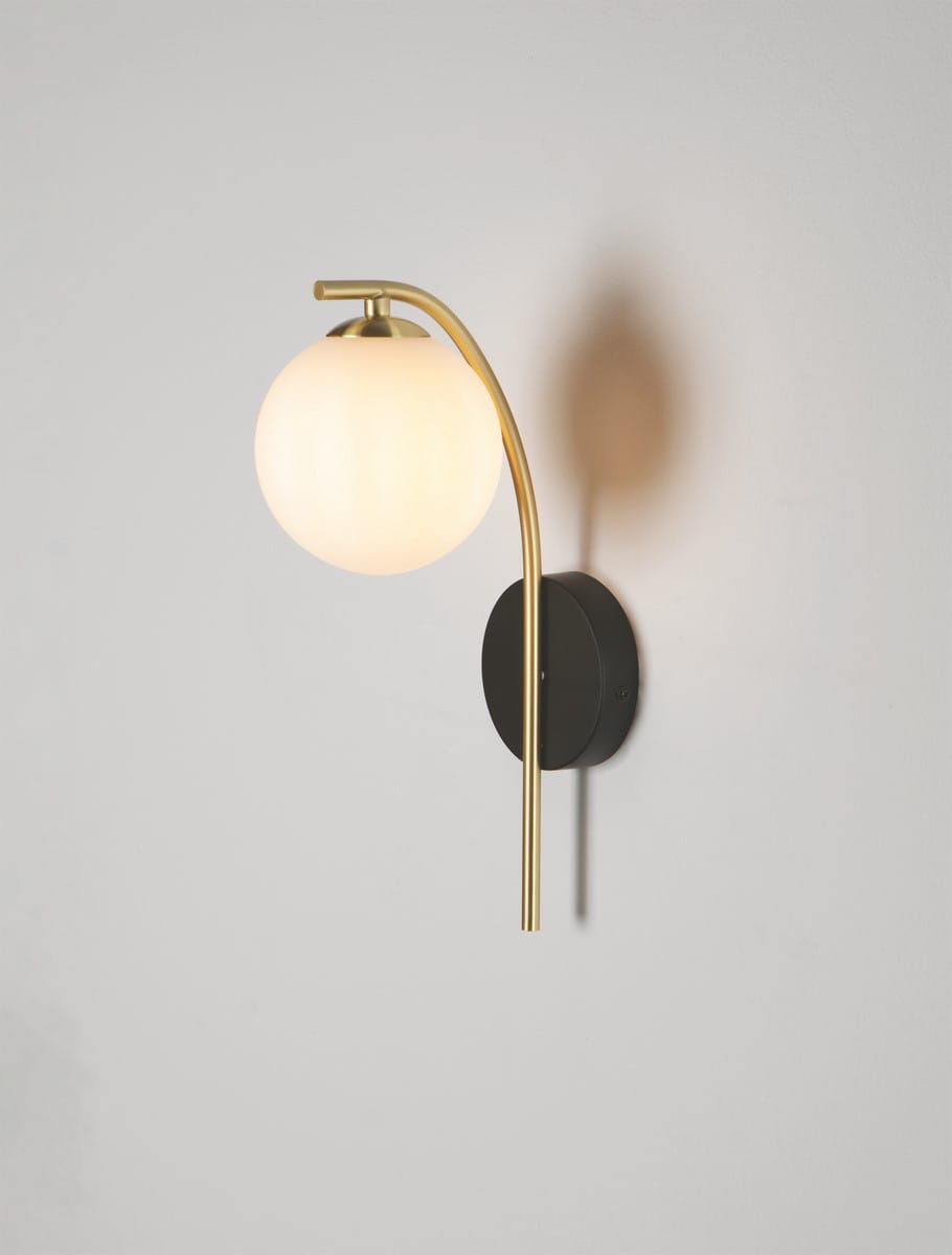 Kinkiet Chao to kwintesencja elegancji, w której nowoczesność spotyka się z klasycznymi elementami. Wykonany z metalu i szkła, kinkiet łączy w sobie ponadczasowe zestawienie kolorystyczne: czerni, złota i bieli, które harmonijnie współgrają, tworząc niezwykle stylowy efekt. Szklany, biały klosz w kształcie kuli osadzony jest na smukłym, złotym wsporniku, który przczepiony jest do czarnego elementu mocującego. Całość ma minimalistyczny i zarazem luksusowy charakter.
