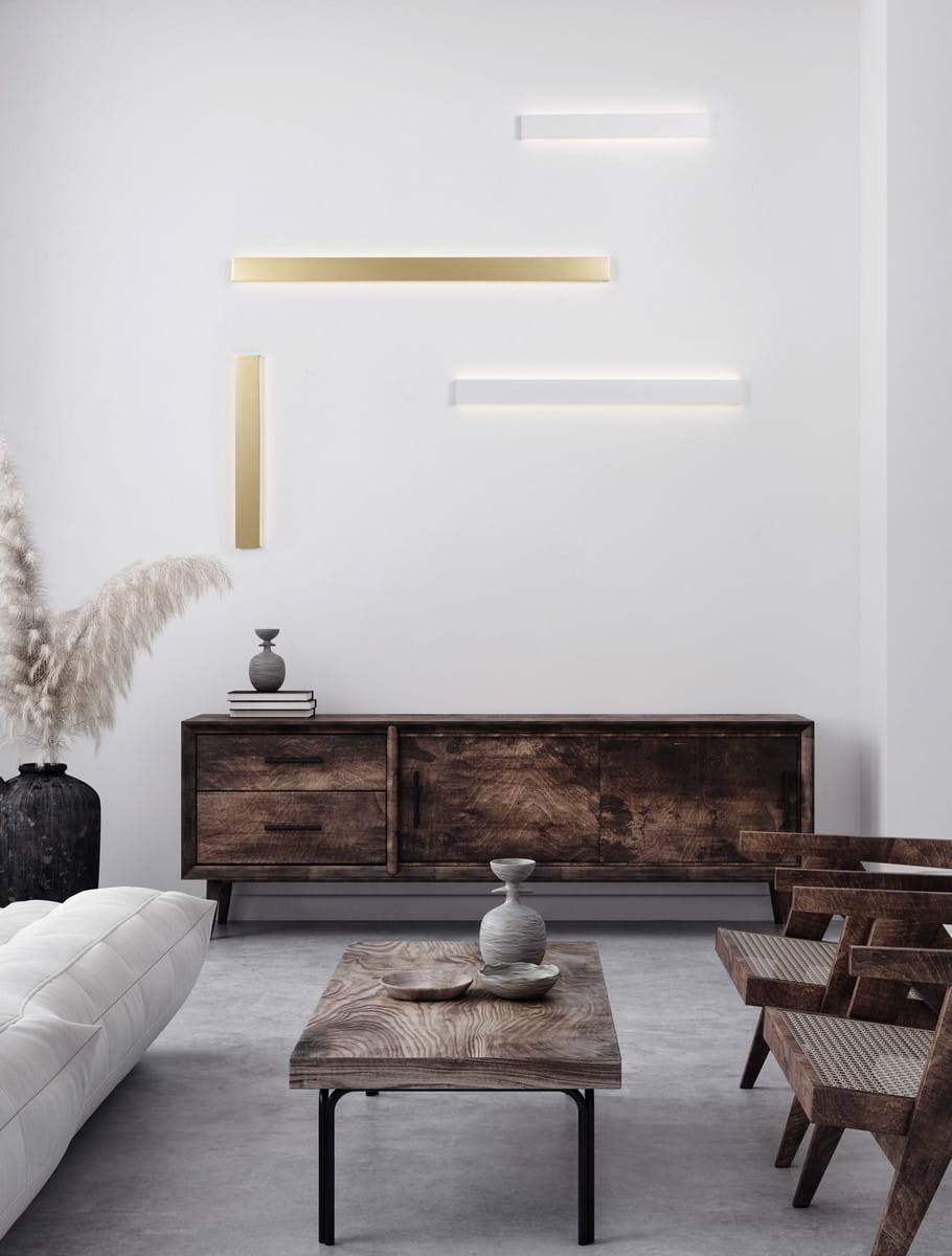 Kinkiet Durango wykonany został z trwałego aluminium, dzięki czemu jest nie tylko lekki, ale również wytrzymały. Charakteryzuje się prostą, wydłużoną formą, która emanuje nowoczesną elegancją. Jego smukła konstrukcja sprawia, że świetnie prezentuje się zarówno pojedynczo, jak i w kompozycjach z kilkoma kinkietami, tworząc unikalne układy świetlne na ścianie. Występuje w złoty, białym i czarnym wykończeniu oraz w 3 różnych rozmiarach, co pozwala na wszechstronne zastosowanie w aranżacjach wnętrz.