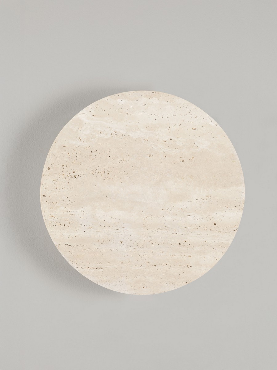 Kinkiet Grazelma o średnicy 30 cm to większy wariant wyjątkowej oprawy od Nova Luce, który celebruje surowe piękno naturalnych surowców. Wykonany w całości z naturalnego trawertynu, prezentuje się jako szlachetny, kamienny monolit. Charakterystyczna, porowata struktura kamienia sprawia, że każda sztuka jest unikatowa – posiada własną historię zapisaną w układzie żyłkowań i naturalnych mikrootworów.
