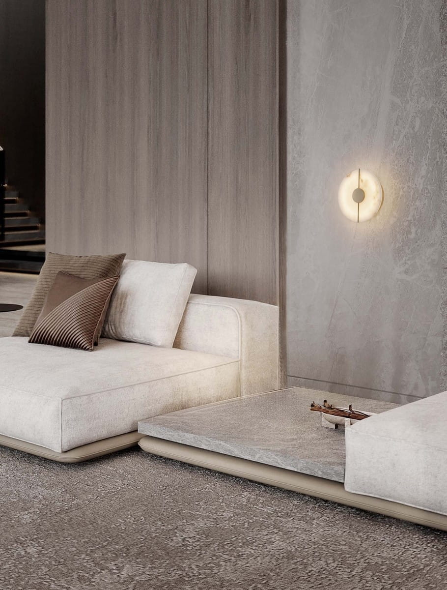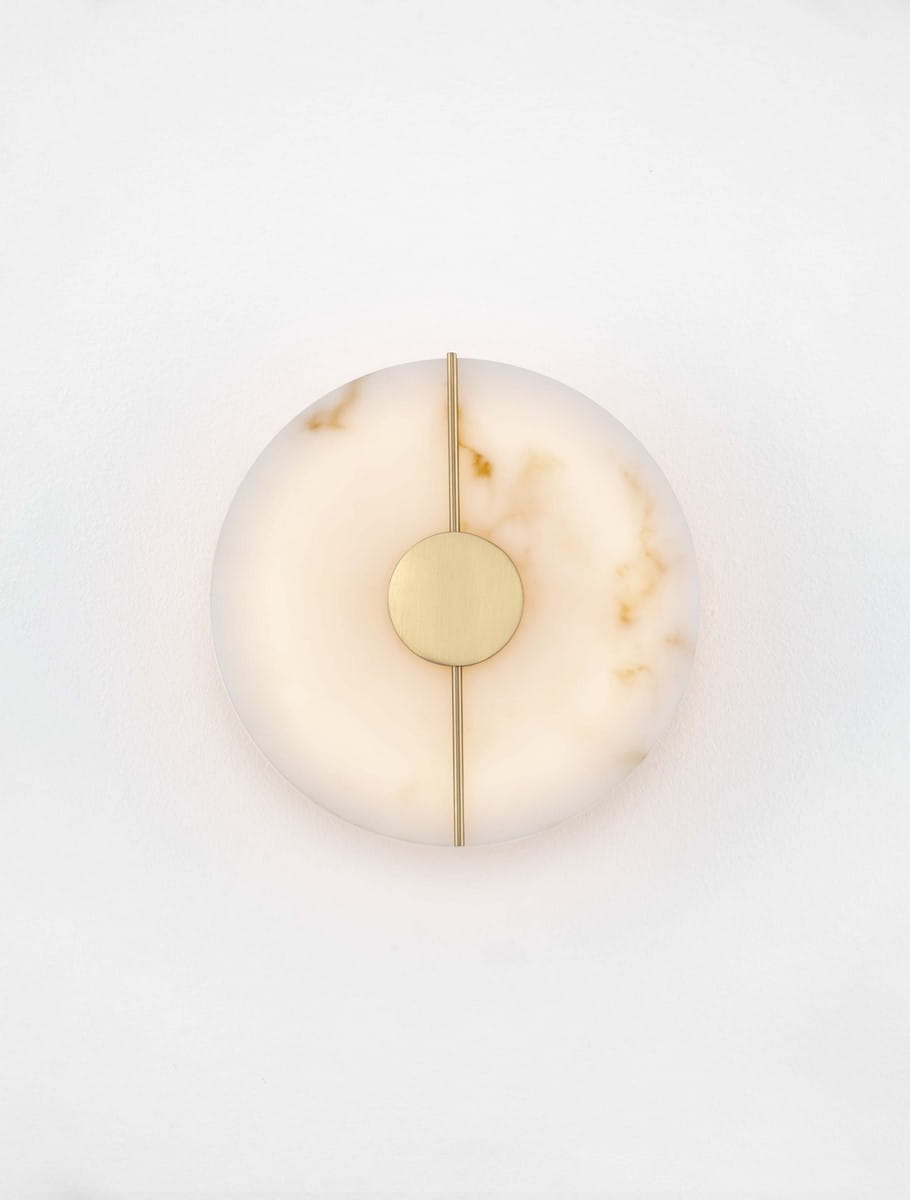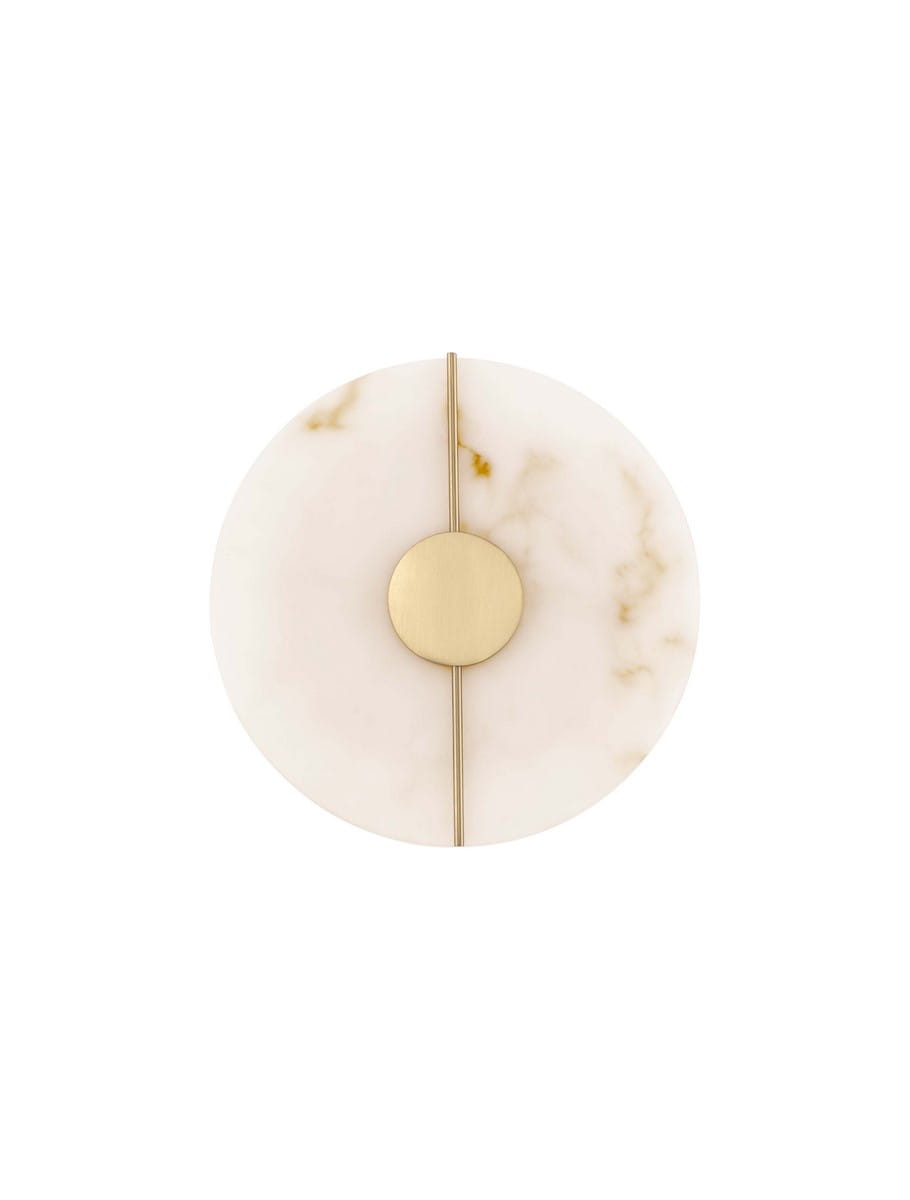 Smukła, owalna forma kinkietu podkreśla subtelne żyłkowanie marmuru, który naturalnie rozprasza światło, tworząc ciepłą i przytulną atmosferę. Delikatny metalowy element biegnący przez środek klosza nadaje konstrukcji harmonii i wyjątkowego charakteru, sprawiając, że kinkiet Mairana jest zarówno funkcjonalnym źródłem światła, jak i dekoracyjną ozdobą ściany.