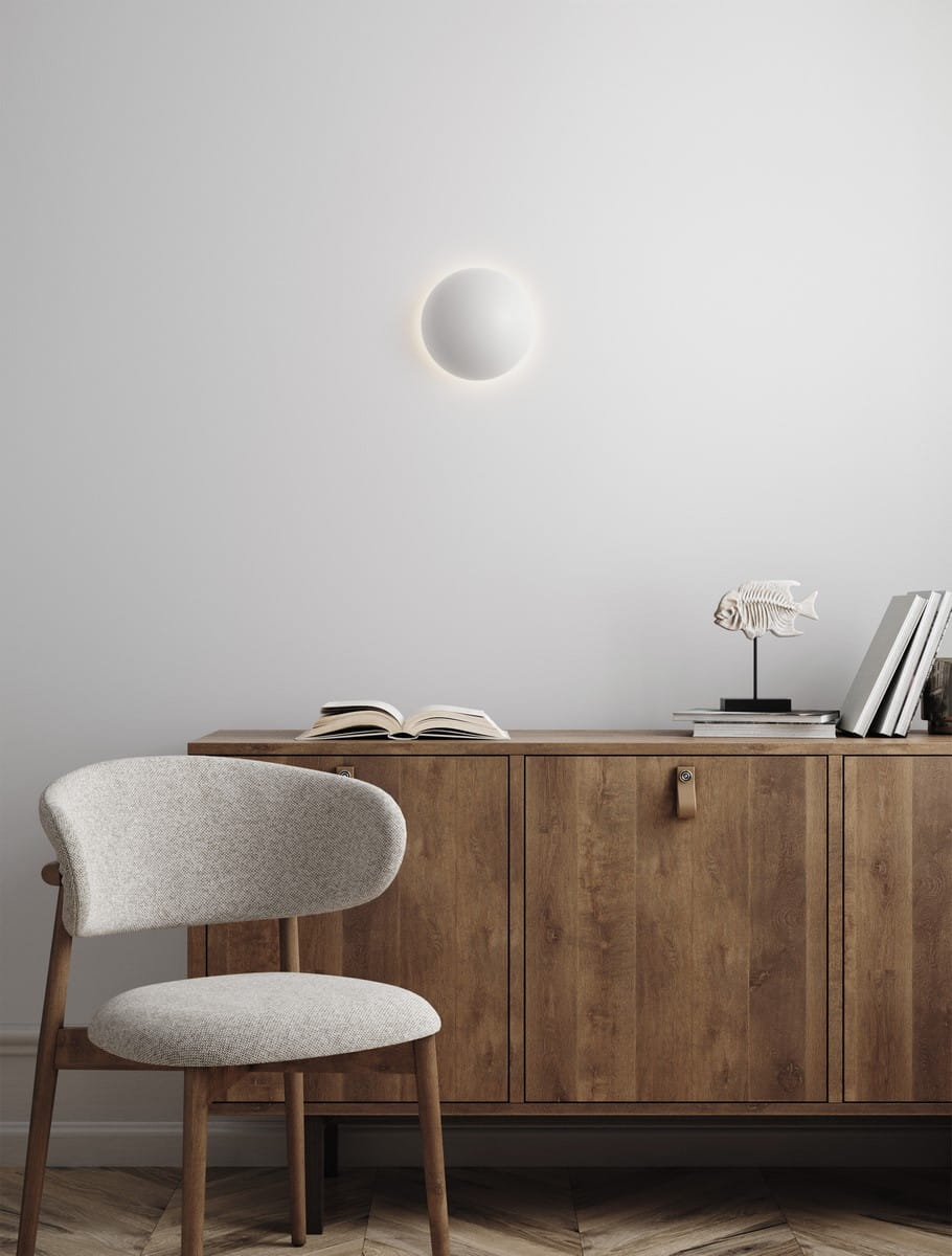 Kinkiet Moxos to nowoczesna lampa ścienna, wykonana z aluminium, która zachwyca minimalistycznym designem oraz subtelnym światłem rozpraszanym dookoła. Jej forma przypomina delikatnie zaokrągloną kulę, która przywodzi na myśl elegancki i ponadczasowy styl.