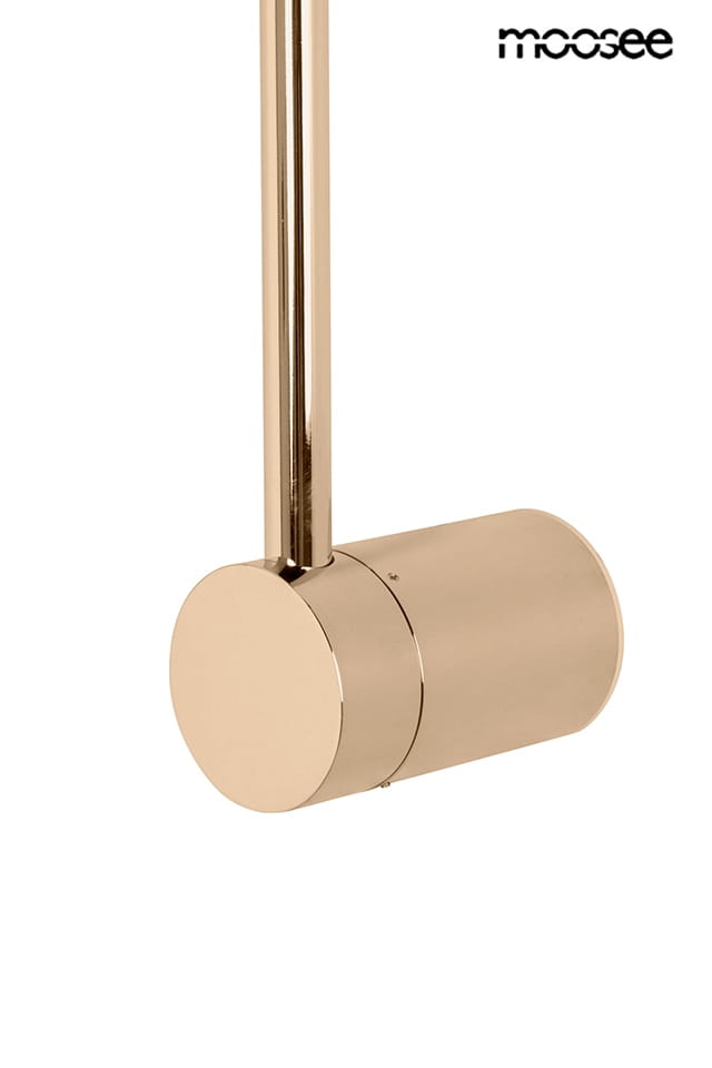 Kinkiet OMBRE WALL w całości został wykonany ze stali w kolorze złotym. Lampa składa się z podłużnego, wąskiego klosza z wbudowanym źródłem światła LED, które pokrywa akrylowa osłonka. Kinkiet Ombre punktowo rozświetli ścianę tworząc wspaniały efekt wizualny. Lampa do ściany przytwierdzona jest za pomocą okrągłego elementu mocującego umieszonego asymetrycznie, tworząc krótsze ramię u góry i dłuższe na dole.