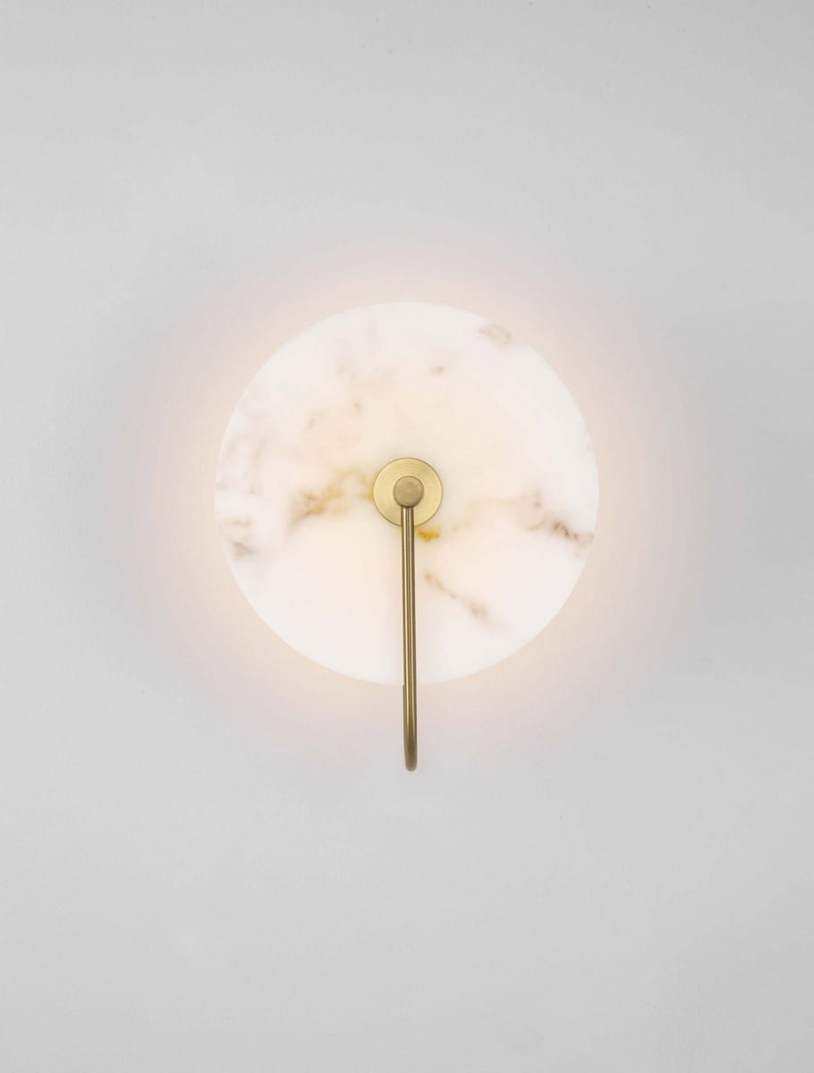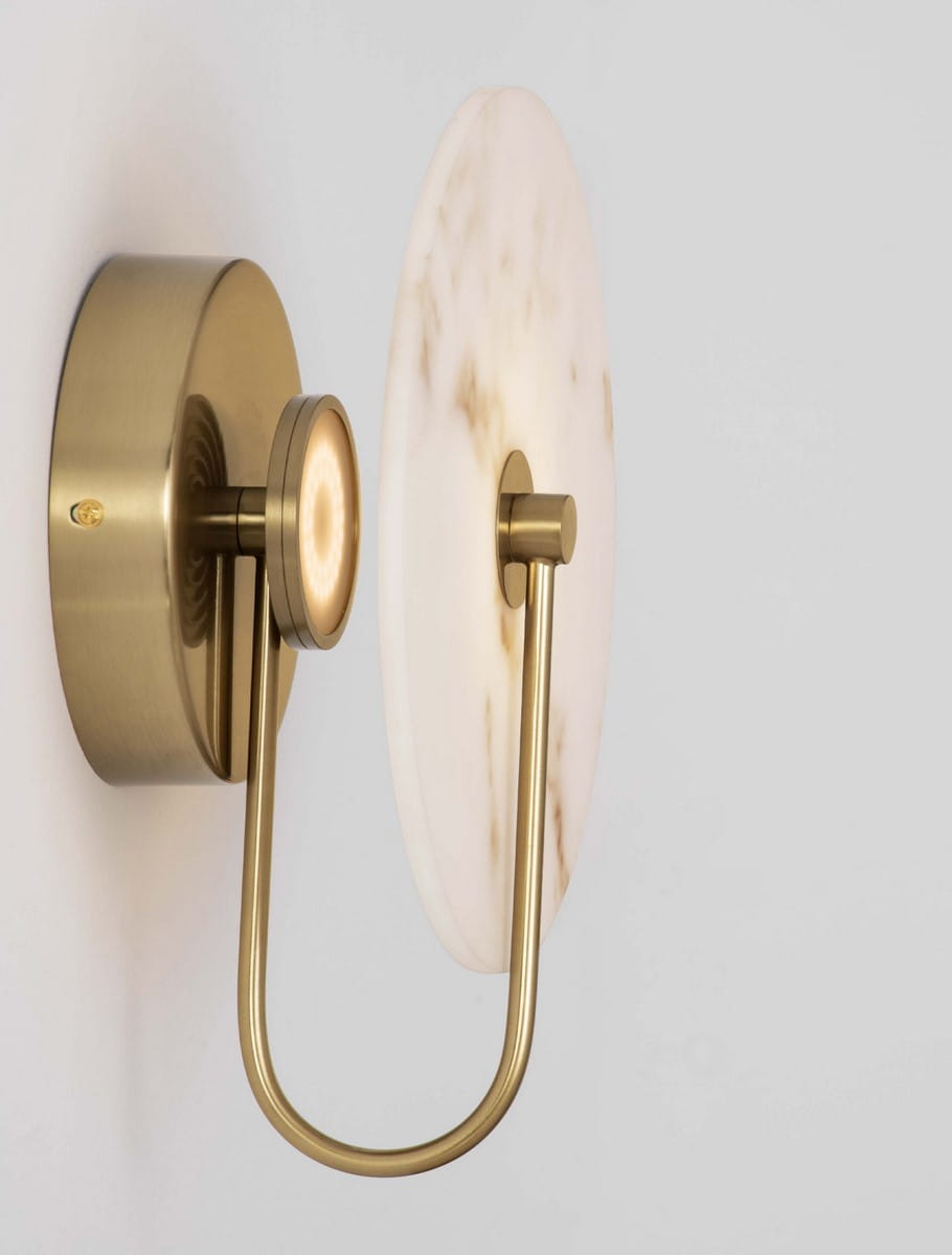 Kinkiet Saipina to wyrafinowane połączenie elegancji marmuru i metalu, które nada każdemu wnętrzu klasy i stylu. Jego charakterystyczny okrągły klosz wykonany z naturalnego białego marmuru subtelnie rozprasza światło, tworząc miękki, ciepły blask. Złote wykończenia metalowych elementów harmonijnie komponują się z marmurowym wzorem, dodając wnętrzu luksusowego akcentu.