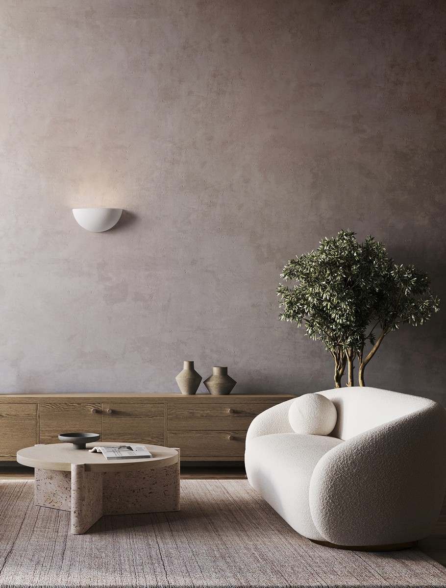 Torenao to kinkiet, który emanuje prostotą i subtelnym wdziękiem. Wykonany z naturalnego gipsu, zachwyca półkolistą, łagodnie zaokrągloną formą, która harmonijnie wtapia się w przestrzeń, tworząc wrażenie miękkiej geometrii na ścianie. Jego oszczędna estetyka doskonale współgra z wnętrzami w stylu japandi, minimalistycznym czy naturalnym.