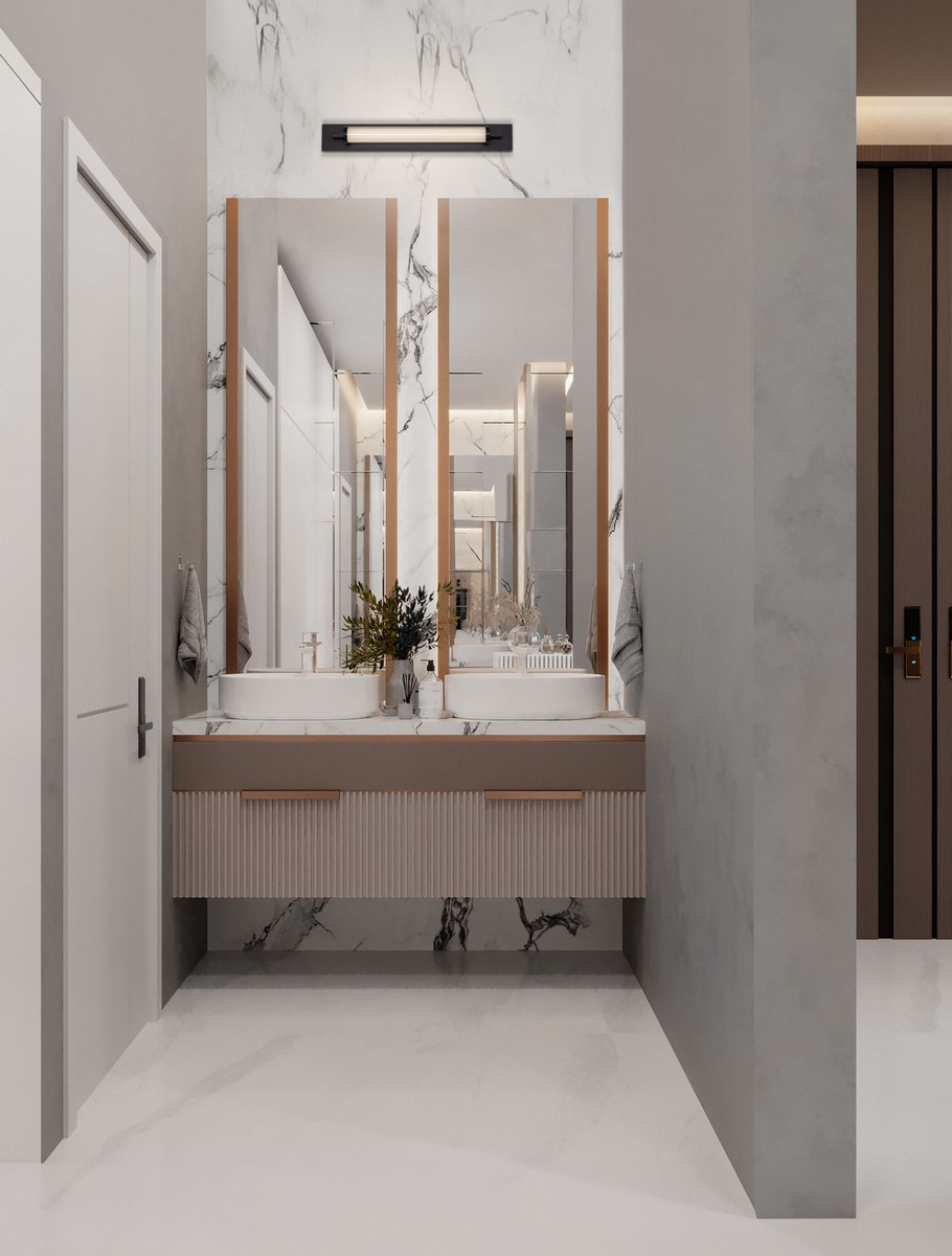 Felorna dostępna jest w dwóch rozmiarach, co pozwala dopasować ją do zarówno większych, jak i bardziej kompaktowych wnętrz. Można wybierać między elegancką czernią a ciepłym, matowym złotem – oba warianty doskonale wpisują się w współczesne aranżacje łazienkowe, dodając im subtelnego wyrafinowania.
