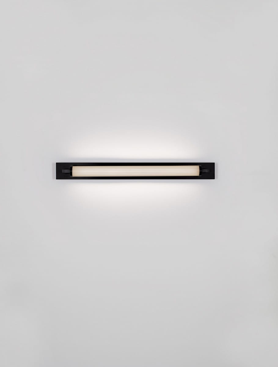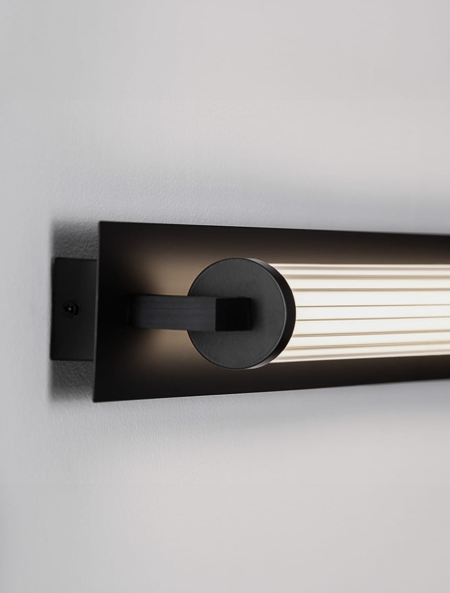 Felorna to nowoczesna lampa ścienna, zaprojektowana z myślą o eleganckich i funkcjonalnych przestrzeniach łazienkowych. Jej minimalistyczna forma opiera się na prostokątnej, metalowej ramie, w której osadzony został podłużny, żłobiony klosz ze szkła, zapewniający równomierne i miękkie rozproszenie światła. To sprawia, że oświetlenie jest nie tylko efektywne, ale również niezwykle komfortowe dla oka.