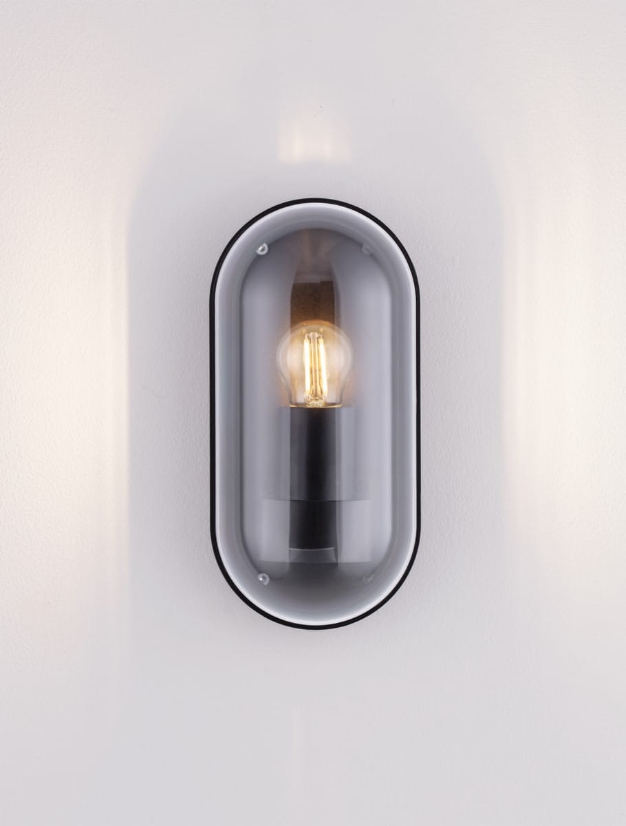 Obudowa kinkietu Julian wykonana jest z wysokiej jakości aluminium, co gwarantuje trwałość i odporność na warunki atmosferyczne. Transparentny, dymiony klosz delikatnie rozprasza światło, tworząc miękką poświatę, która nie oślepia, a jednocześnie zapewnia dostateczną ilość światła.