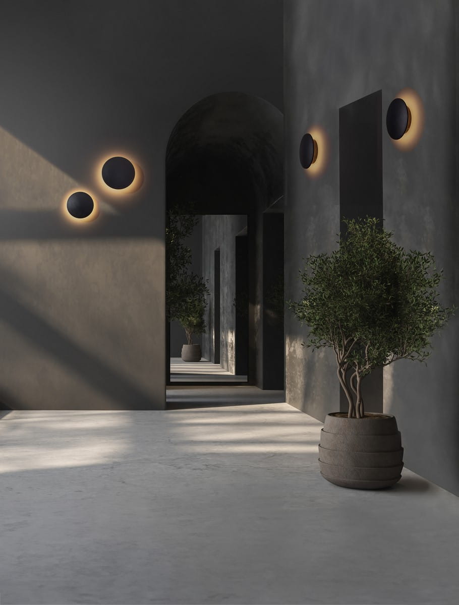 Lampa ta emituje miękkie, rozproszone światło, które subtelnie otacza bryłę lampy, tworząc efektowną, kulistą poświatę. Dostępna jest w dwóch kolorach – klasycznej czerni i eleganckiej bieli, co pozwala na dopasowanie do różnych aranżacji zewnętrznych. Ponadto, kinkiet Pailon oferowany jest w dwóch rozmiarach, co daje jeszcze większą elastyczność w tworzeniu spójnego oświetlenia na fasadach budynków, tarasach czy w ogrodach.