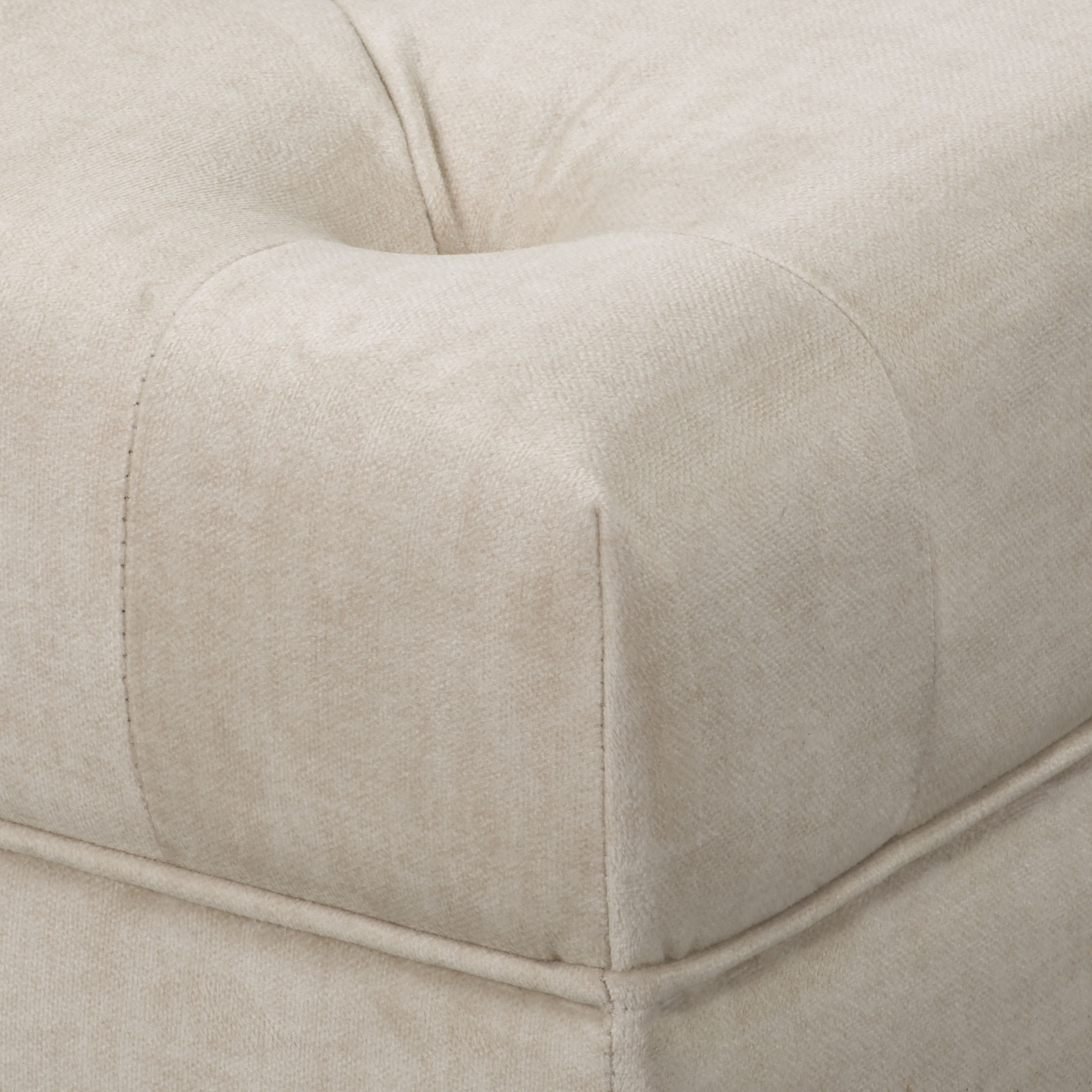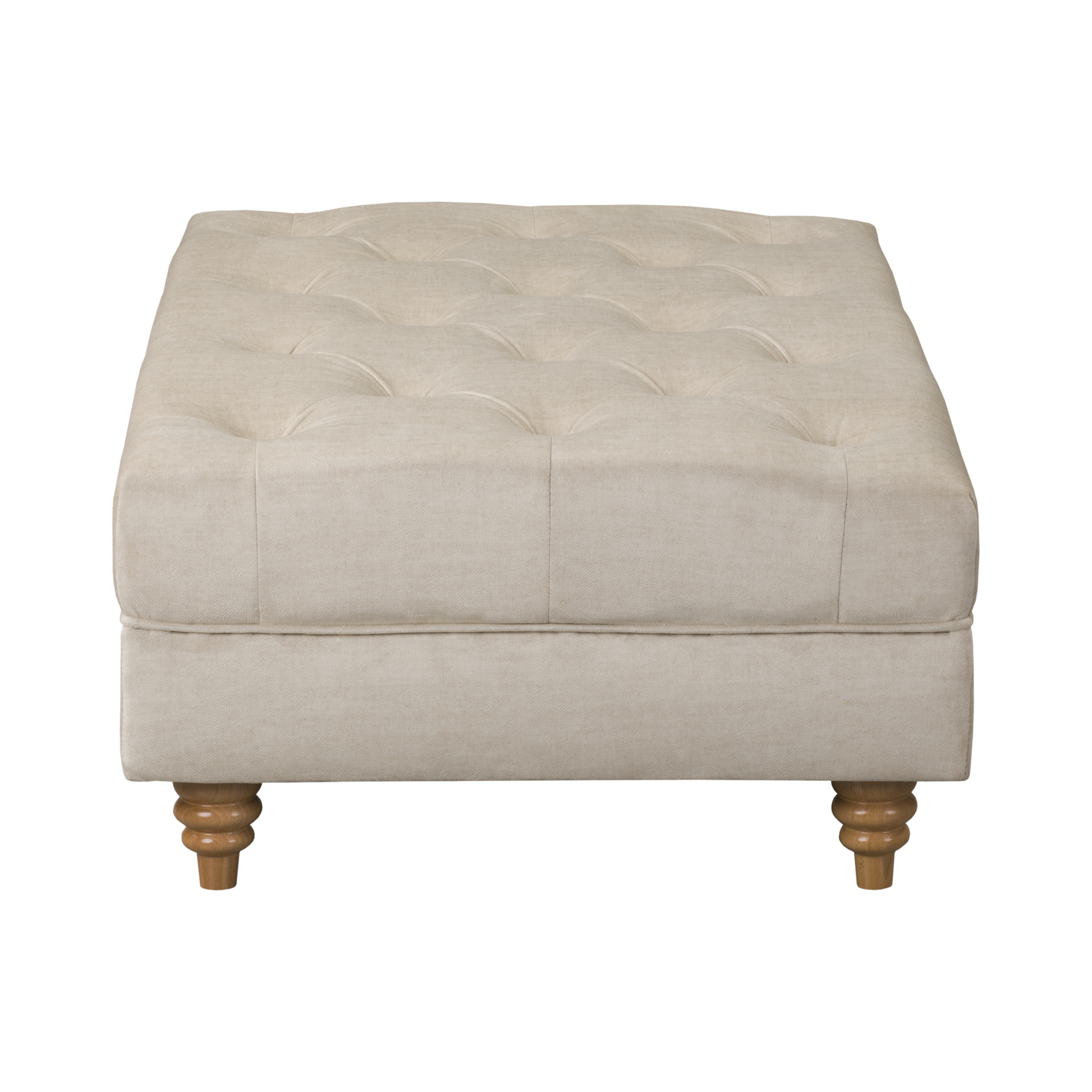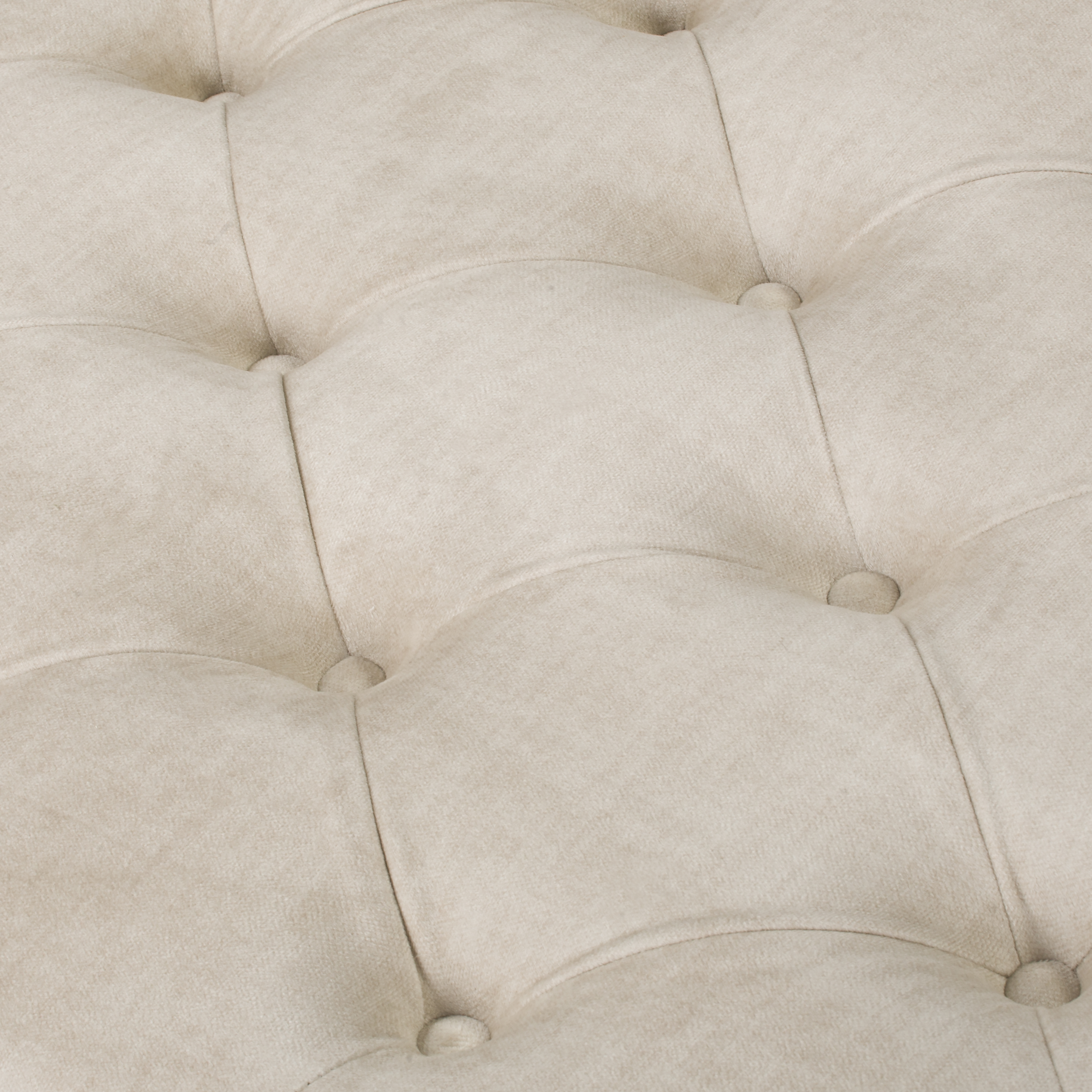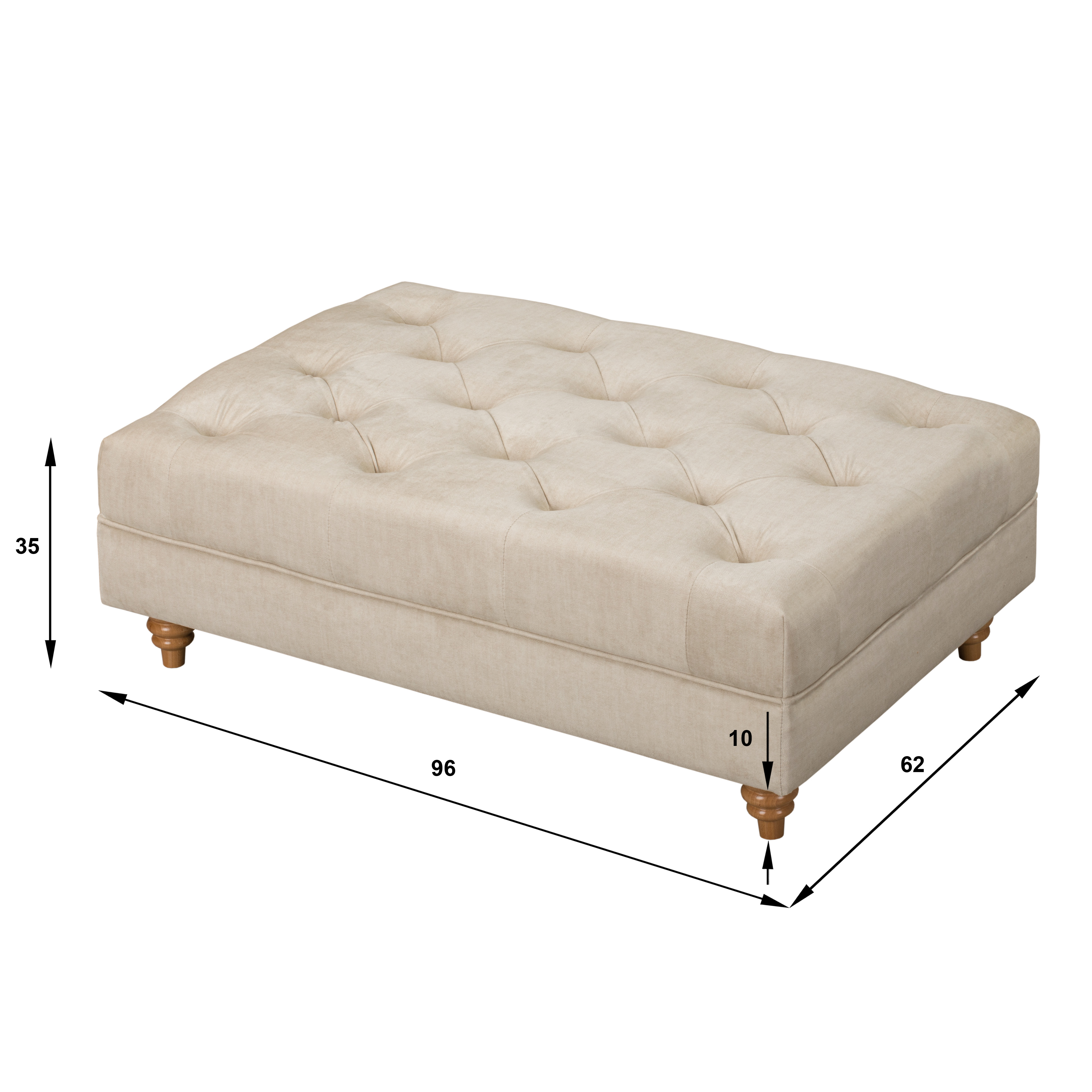 Pufa umieszczona jest na stabilnych, drewnianych nóżkach o wysokości 10 cm. Jej klasyczny design sprawia, że jest meblem uniwersalnym, który nigdy nie wychodzi z mody.