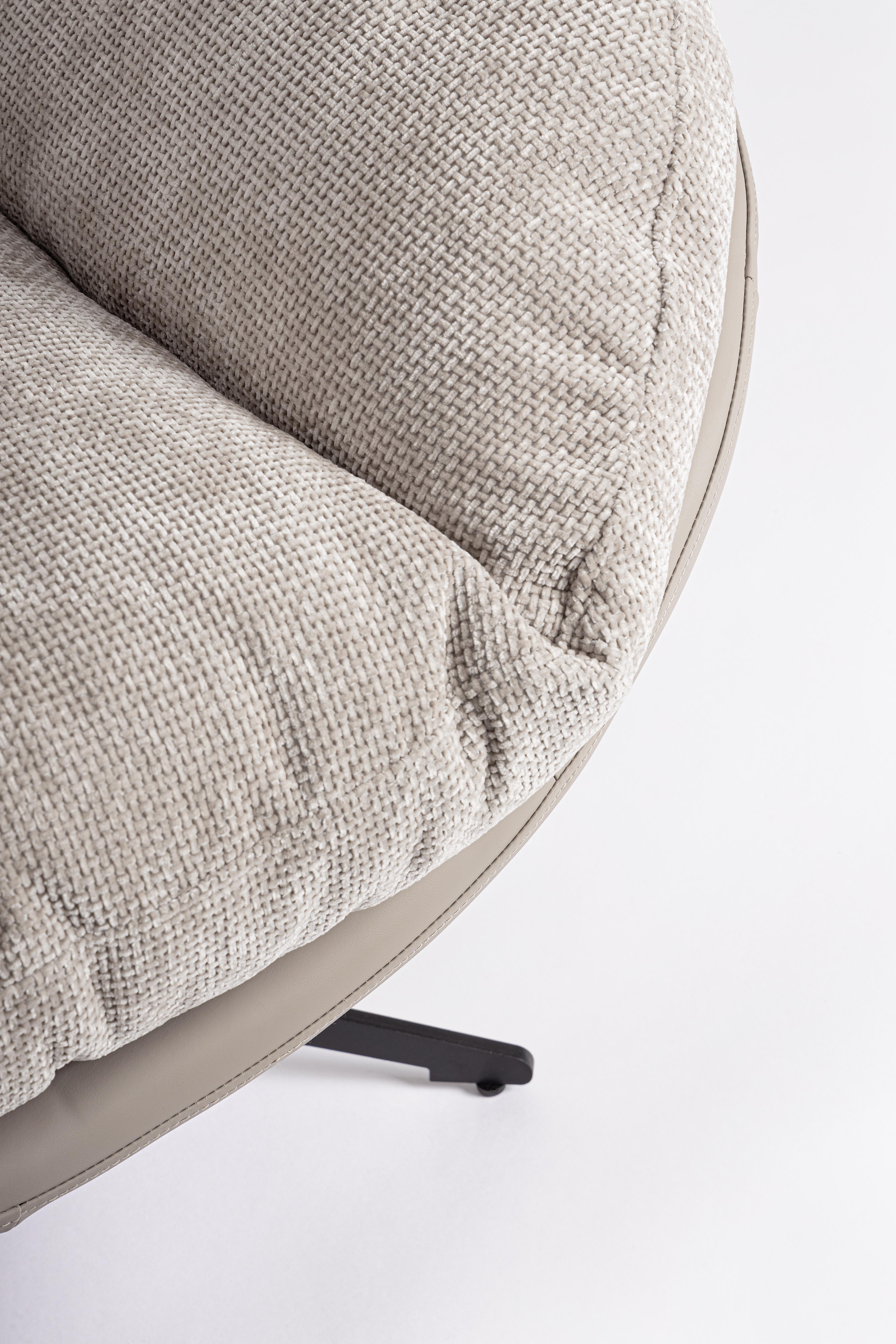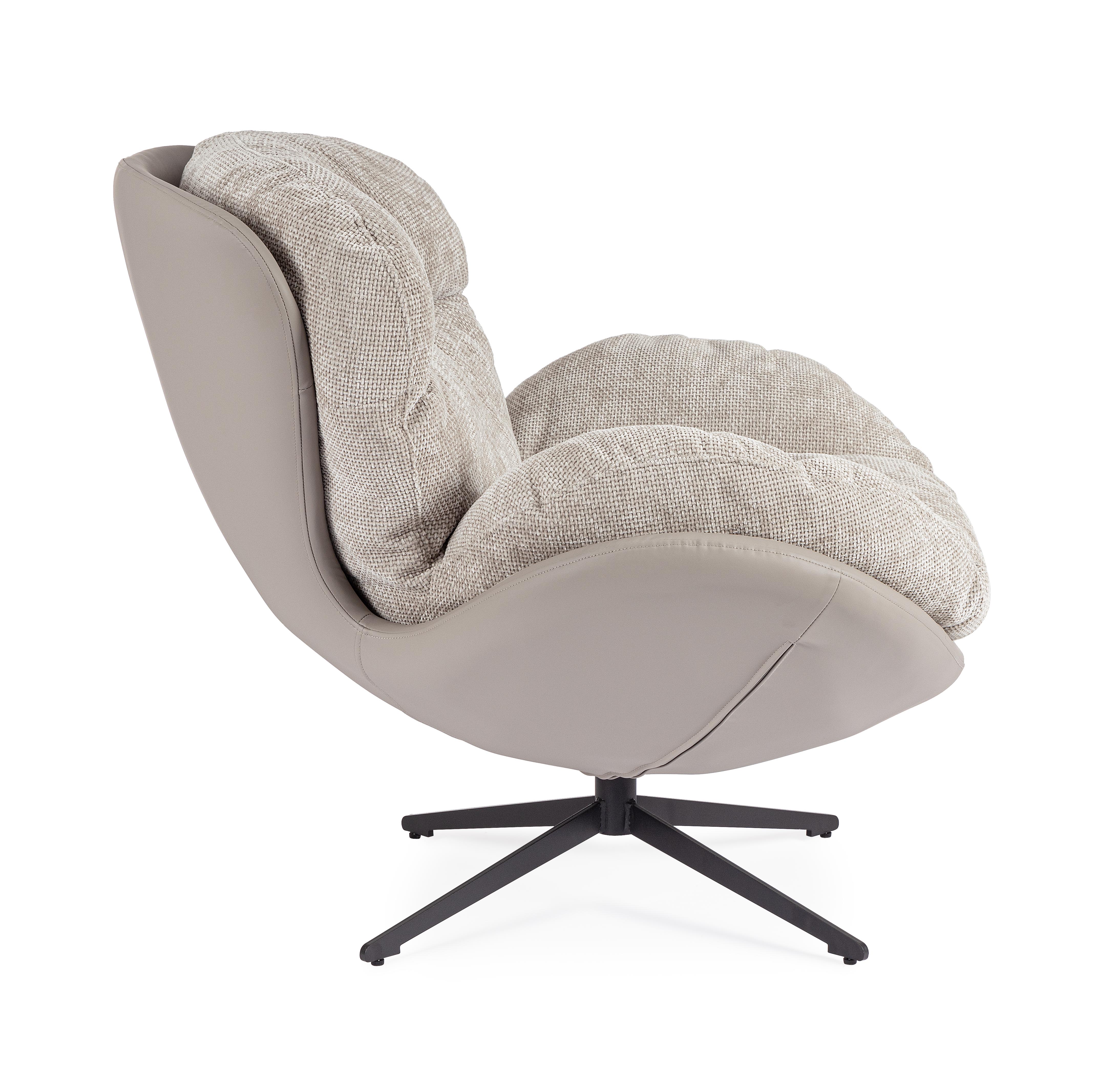 Całość opiera się na stabilnej, czarnej metalowej podstawie z funkcją obrotu, która zwiększa wygodę i swobodę codziennego użytkowania. Obła forma, profilowane oparcie oraz szerokie podłokietniki sprawiają, że Adinda jasny szary to fotel zapewniający pełne odprężenie w komfortowym i stylowym wydaniu.