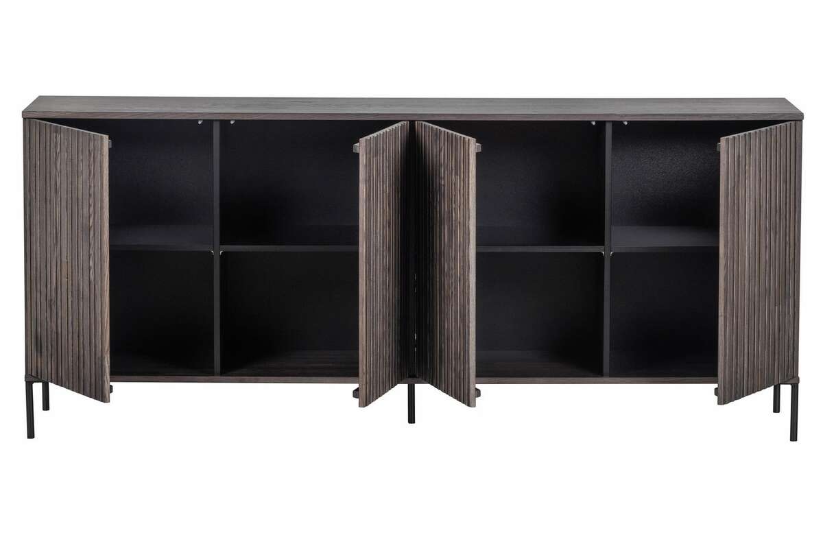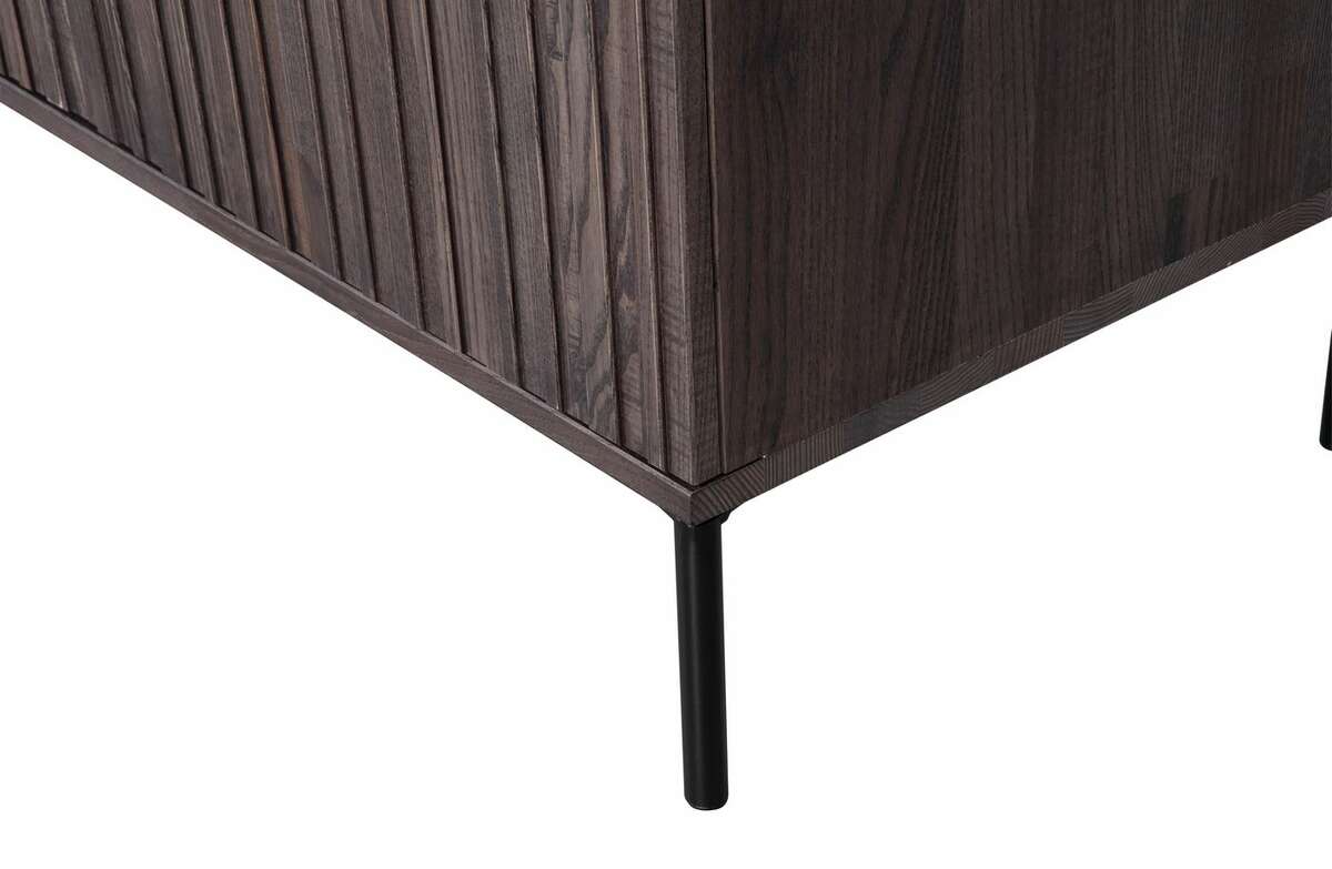 Szykowna komoda GRAVURE JESION pochodzi z kolekcji holenderskiej marki wnętrzarskiej WOOOD. Wykonana jest z jesionu, wykończony brązową bejcą w kolorze espresso. Całość jest solidna, trwała i ma bezpretensjonalny urok, który wprowadza do wnętrza wyrafinowany klimat. Designerski motyw lameli dodaje wykwintnego smaku. Kredens ma czworo drzwi z cichym systemem push-to-open.