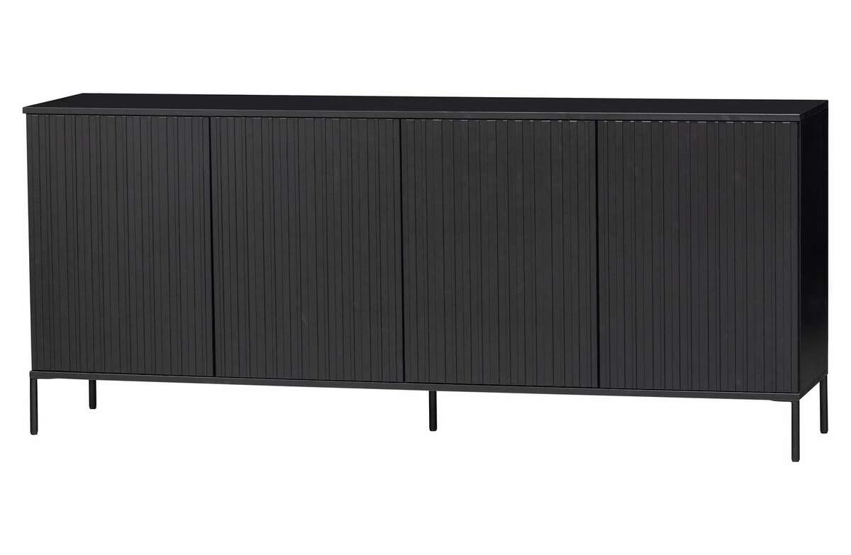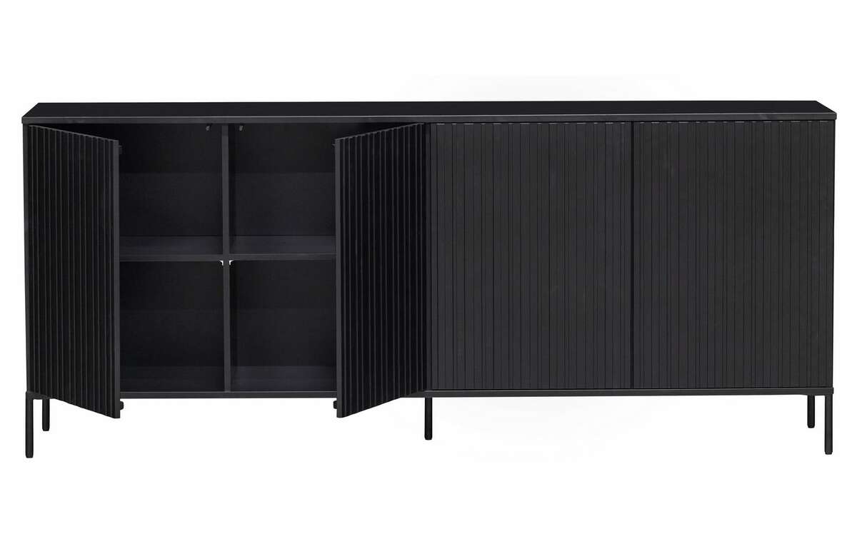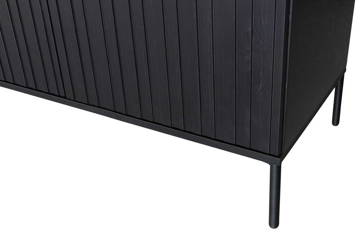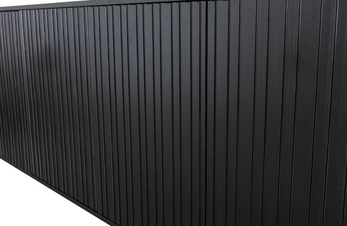 Szykowna komoda GRAVURE sosna czarna pochodzi z kolekcji holenderskiej marki wnętrzarskiej WOOOD. Wykonana jest z jesionu, wykończony brązową bejcą w kolorze espresso. Całość jest solidna, trwała i ma bezpretensjonalny urok, który wprowadza do wnętrza wyrafinowany klimat. Designerski motyw lameli dodaje wykwintnego smaku. Kredens ma czworo drzwi z cichym systemem push-to-open.