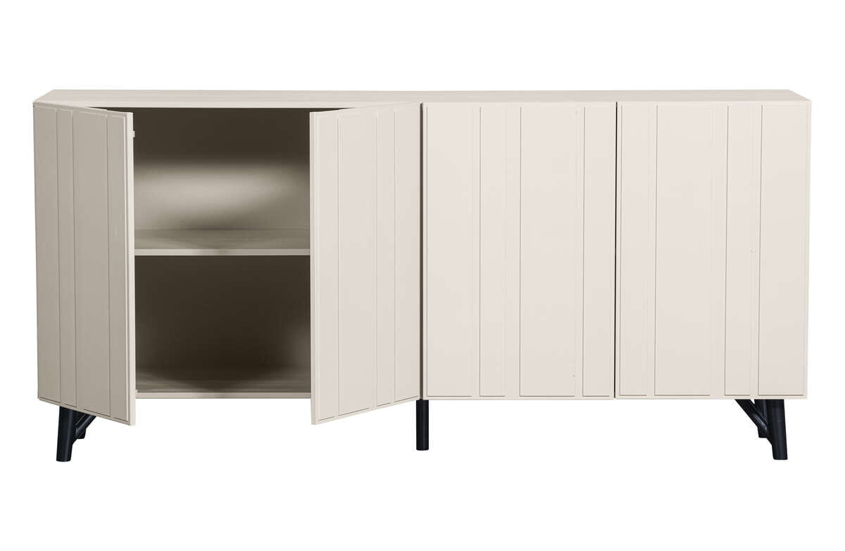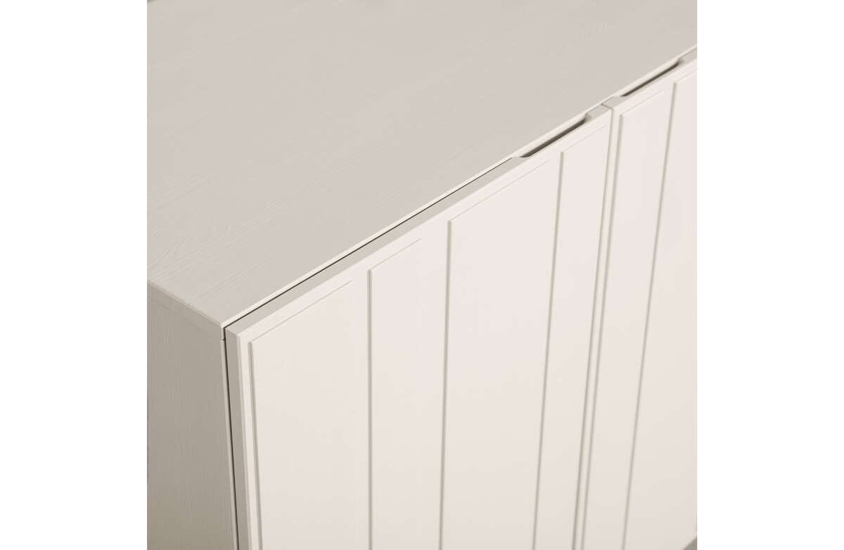 Komoda posiada cztery pojemne drzwi, dzięki czemu zapewnia dużą przestronność i porządek w przechowywaniu rzeczy. Funkcjonalność idzie tu w parze z estetyką, a wyrazista struktura sosnowego drewna dodaje ciepła oraz naturalnego charakteru.