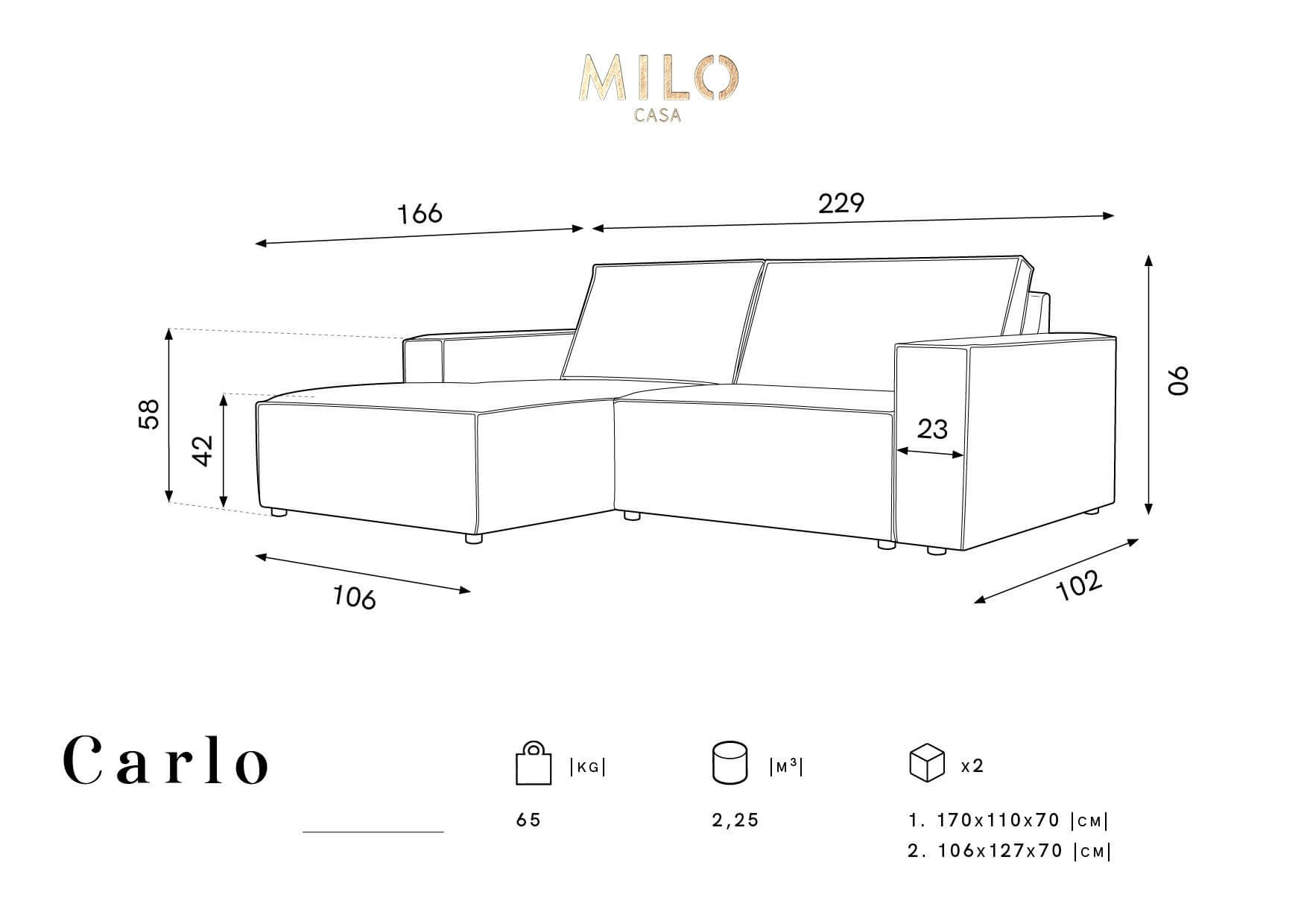 Do wyboru jest układ narożnika: lewy lub prawy. Sofę narożną Carlo oferujemy także w innych wariantach kolorystycznych.