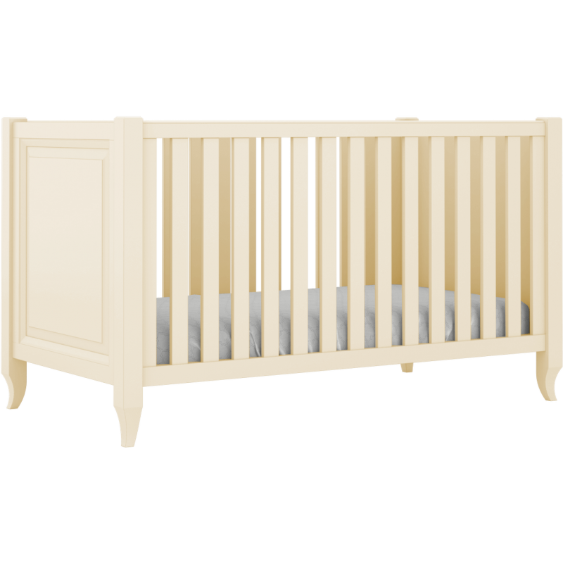 eleganckie łóżeczko dziecięce ze stylizowanymi nóżkami kremowe