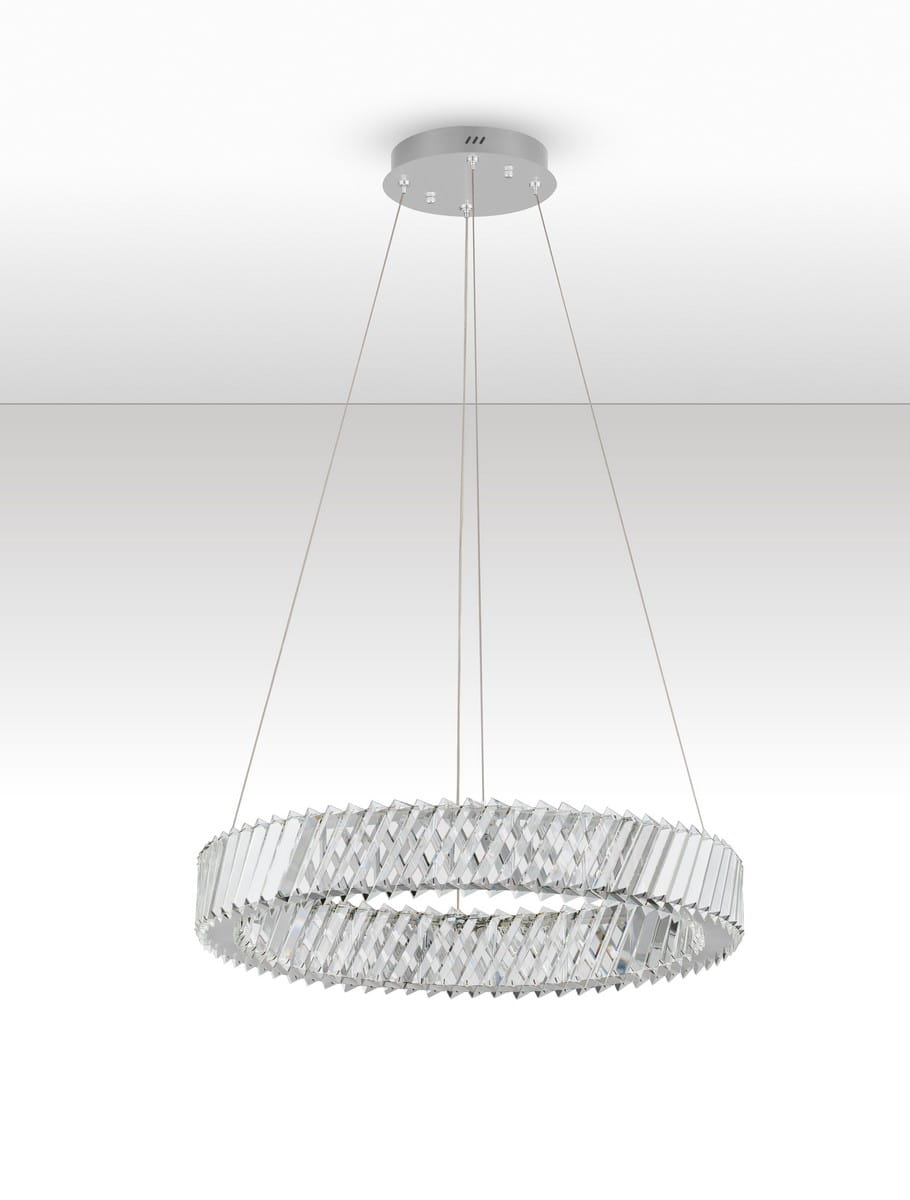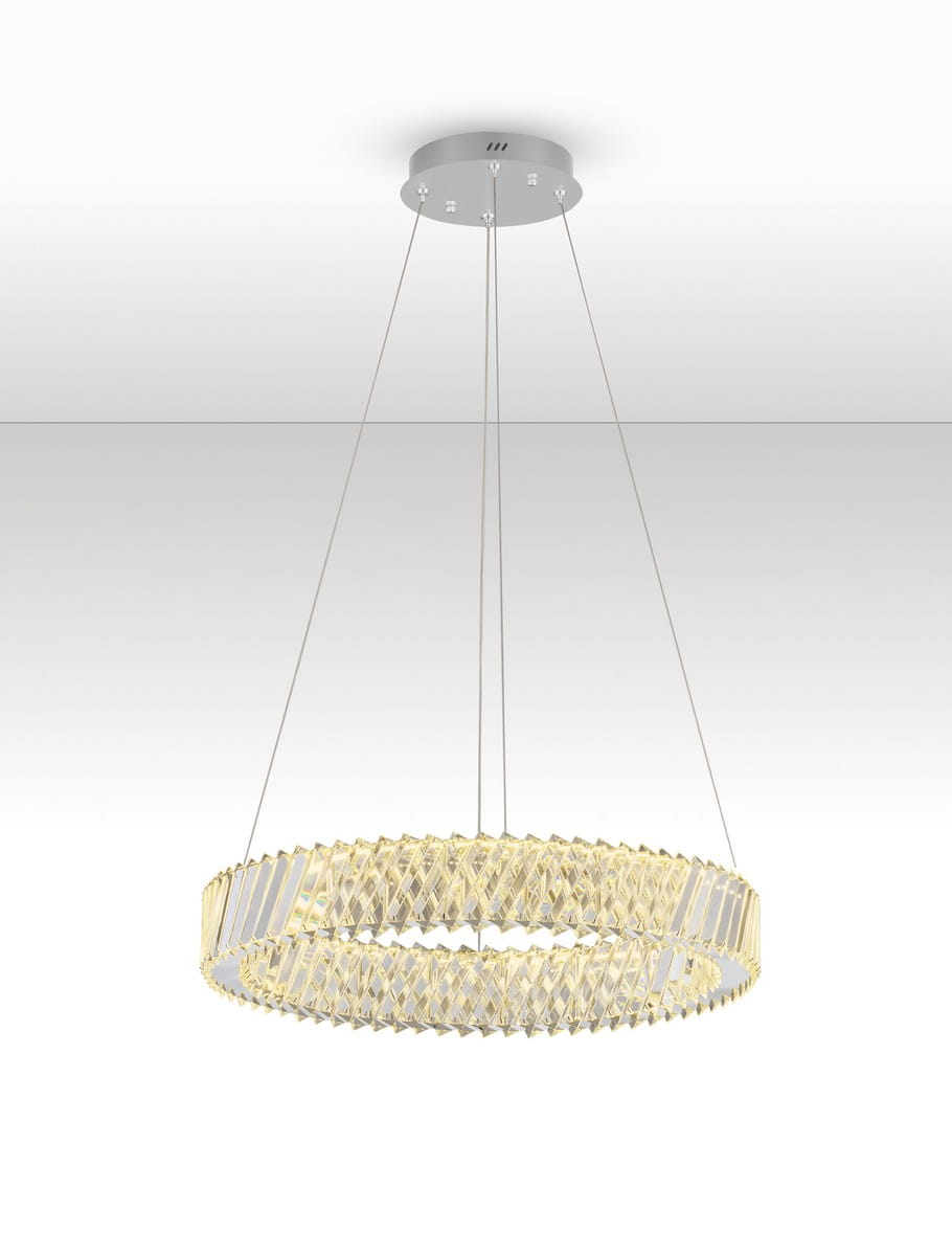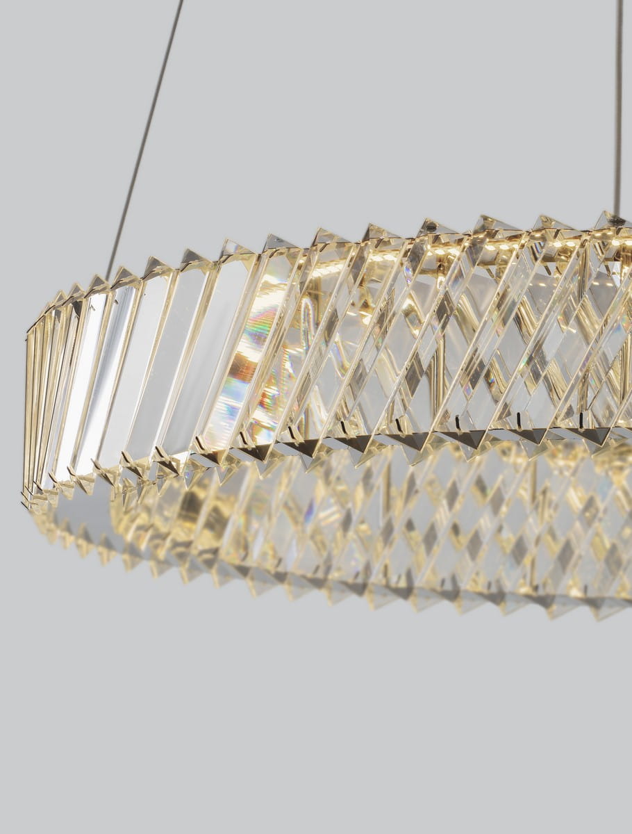 Canlira to lampa wisząca, która przyciąga wzrok swoją precyzją i zjawiskowym efektem świetlnym. Jej charakterystyczny, pierścieniowy kształt zbudowany z misternie szlifowanych kryształów tworzy spektakularną grę światła i refleksów, wnosząc do wnętrza atmosferę luksusu i współczesnej elegancji. To design, który łączy nowoczesność z klasyczną estetyką kryształu w zupełnie nowej odsłonie.