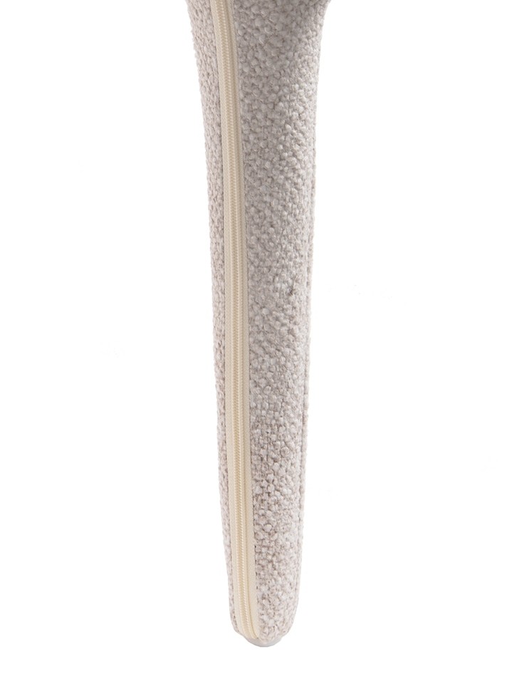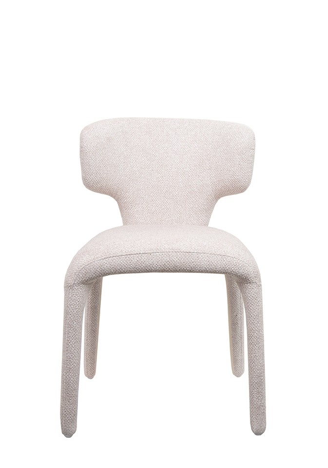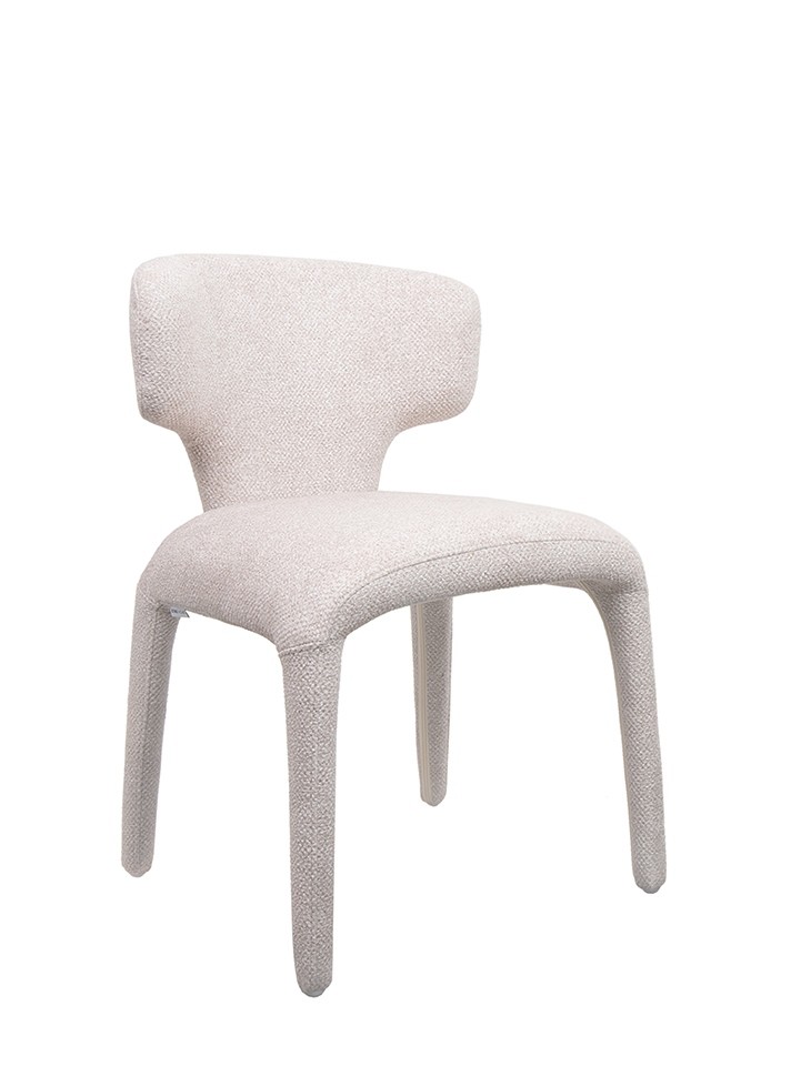 Krzesło Apulia to propozycja dla miłośników odważnego designu, którzy poszukują mebli o unikalnej, organicznej sylwetce. Model ten wyróżnia się wyjątkowo miękką, płynną linią, która zaciera granice między siedziskiem a podstawą, tworząc spójną i rzeźbiarską formę. Tapicerka wykonana z wysokiej jakości tkaniny poliestrowej posiada wyrazistą, strukturalną powierzchnię, która nie tylko jest przyjemna w dotyku, ale również nadaje bryle nowoczesnego, lekkiego charakteru. Jasny, beżowy odcień materiału wspaniale podkreśla obłe kształty krzesła, wprowadzając do wnętrza ciepło i harmonię.