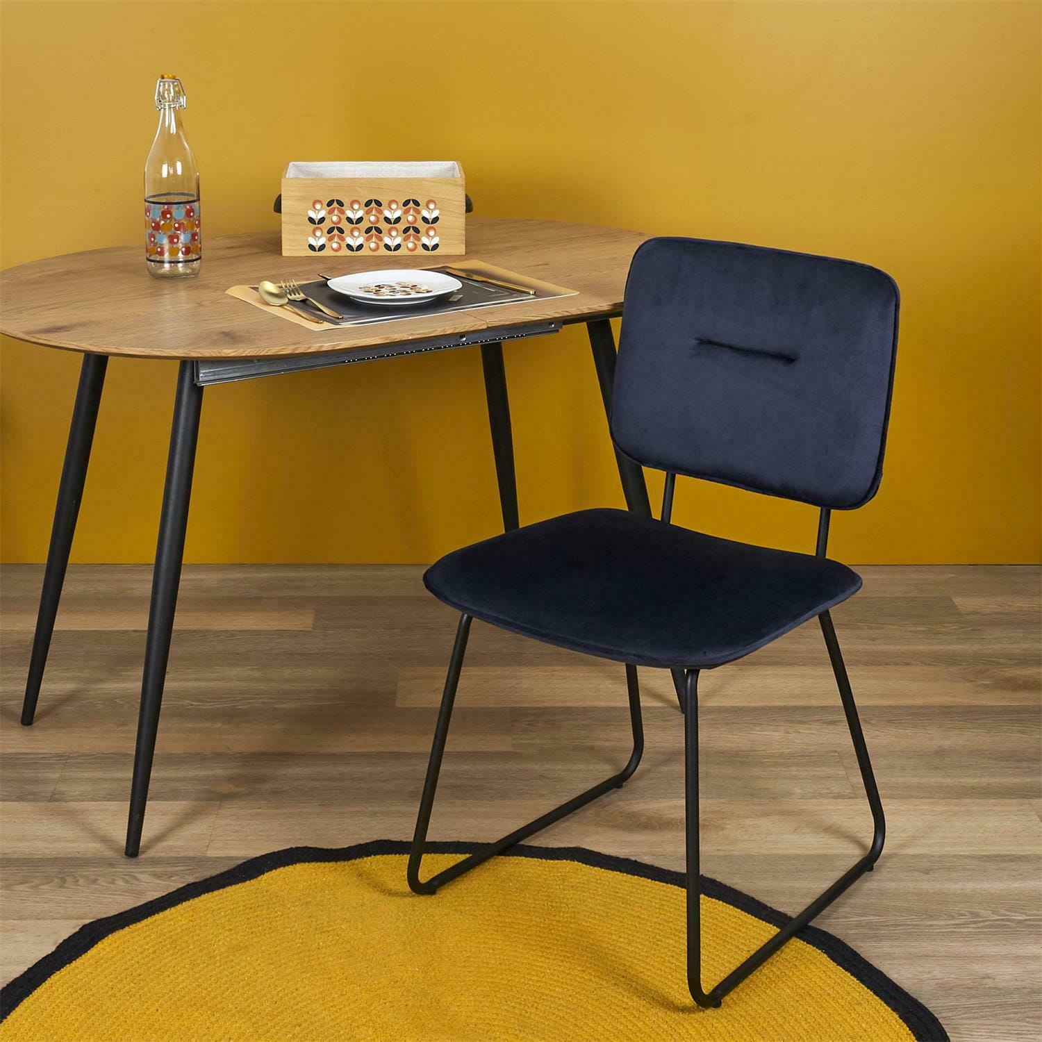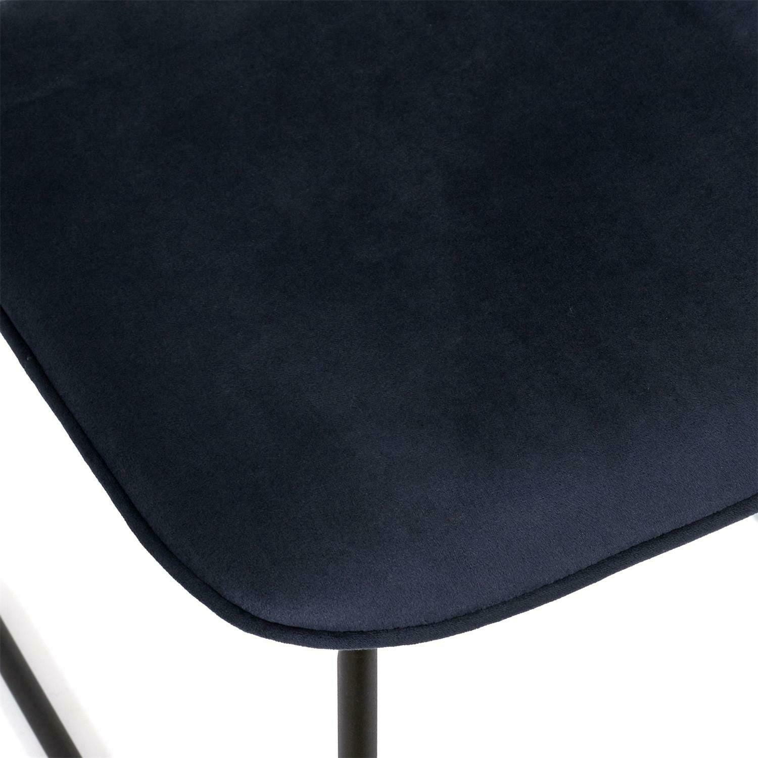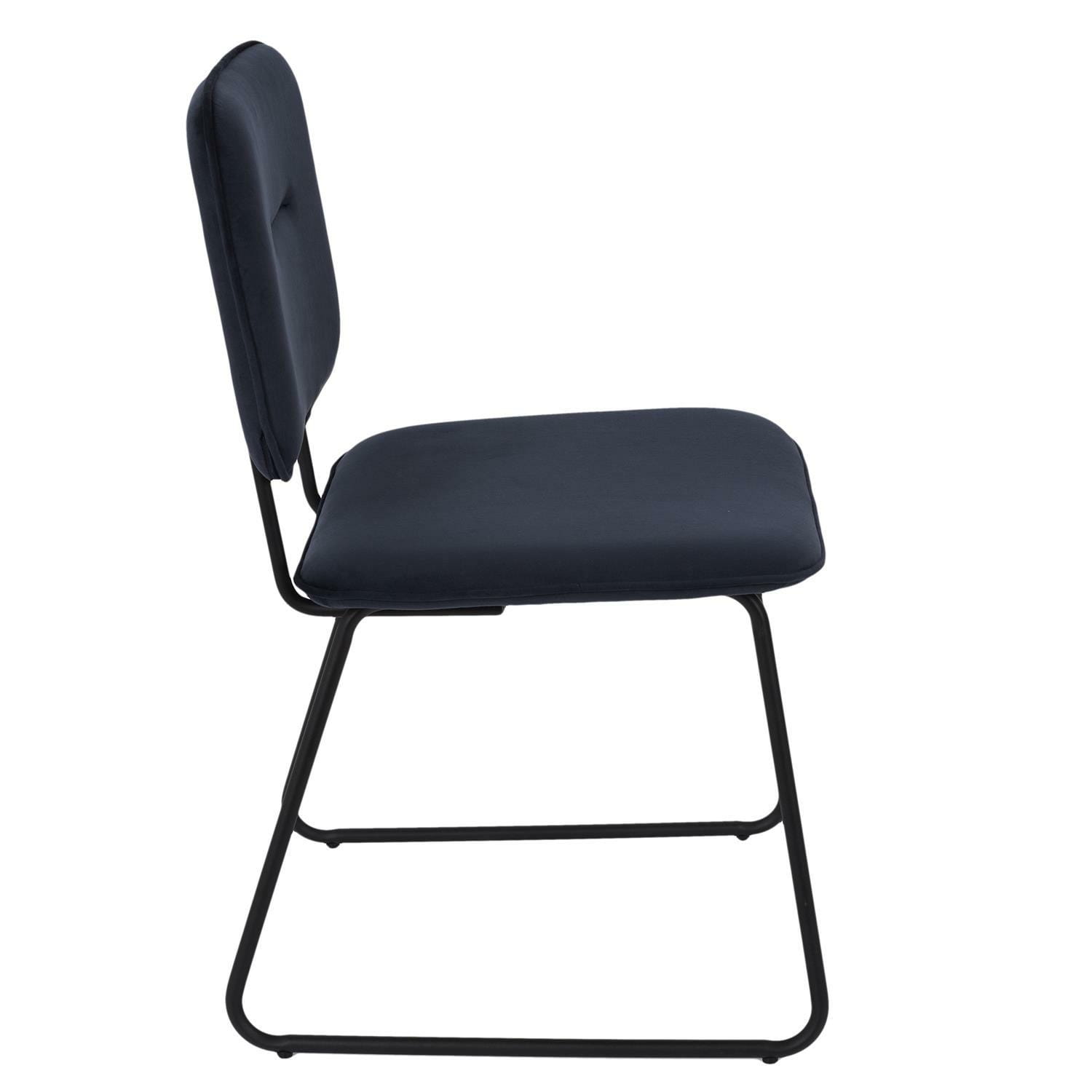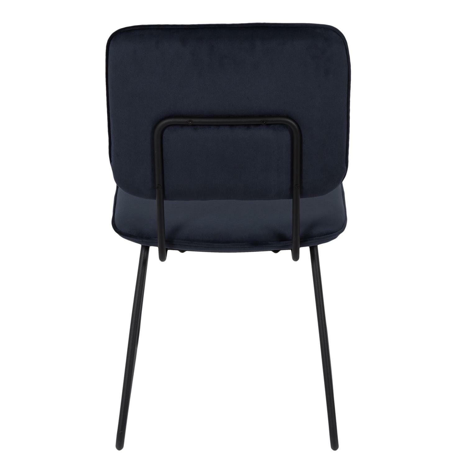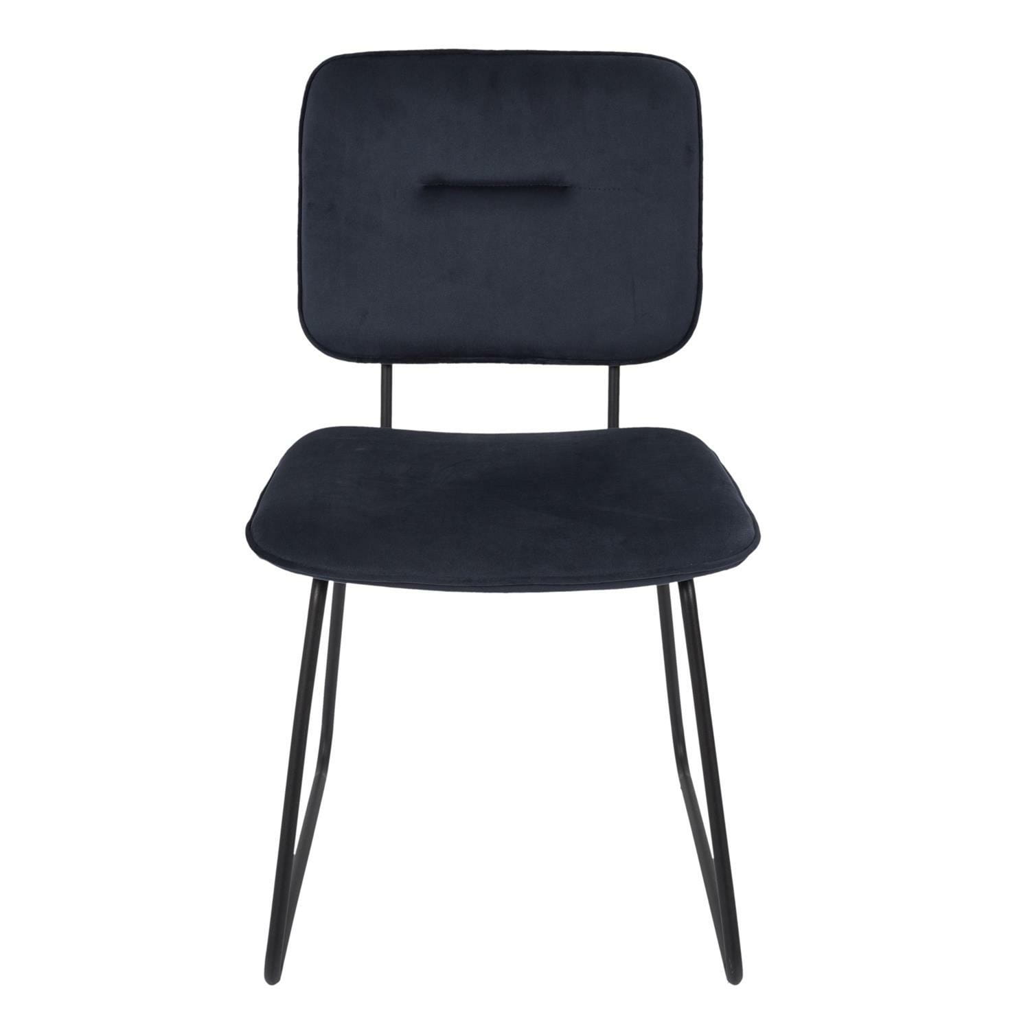 Adele to krzesło o tapicerowanym siedzisku oraz oparciu. Krzesło tapicerowane welwetową tkaniną będzie idealnym meblem do domowej jadalni lub salonu. Tapicerowane oparcie posiada dodatkowo ciekawe przeszycie, które dodaje krzesłu klasy i subtelności. Podstawą krzesła są metalowe płozy malowane proszkowo na kolor czarny. Podstawa krzesła widoczna jest również na plecach krzesła, gdyż metalowy jej element wspiera również oparcie.