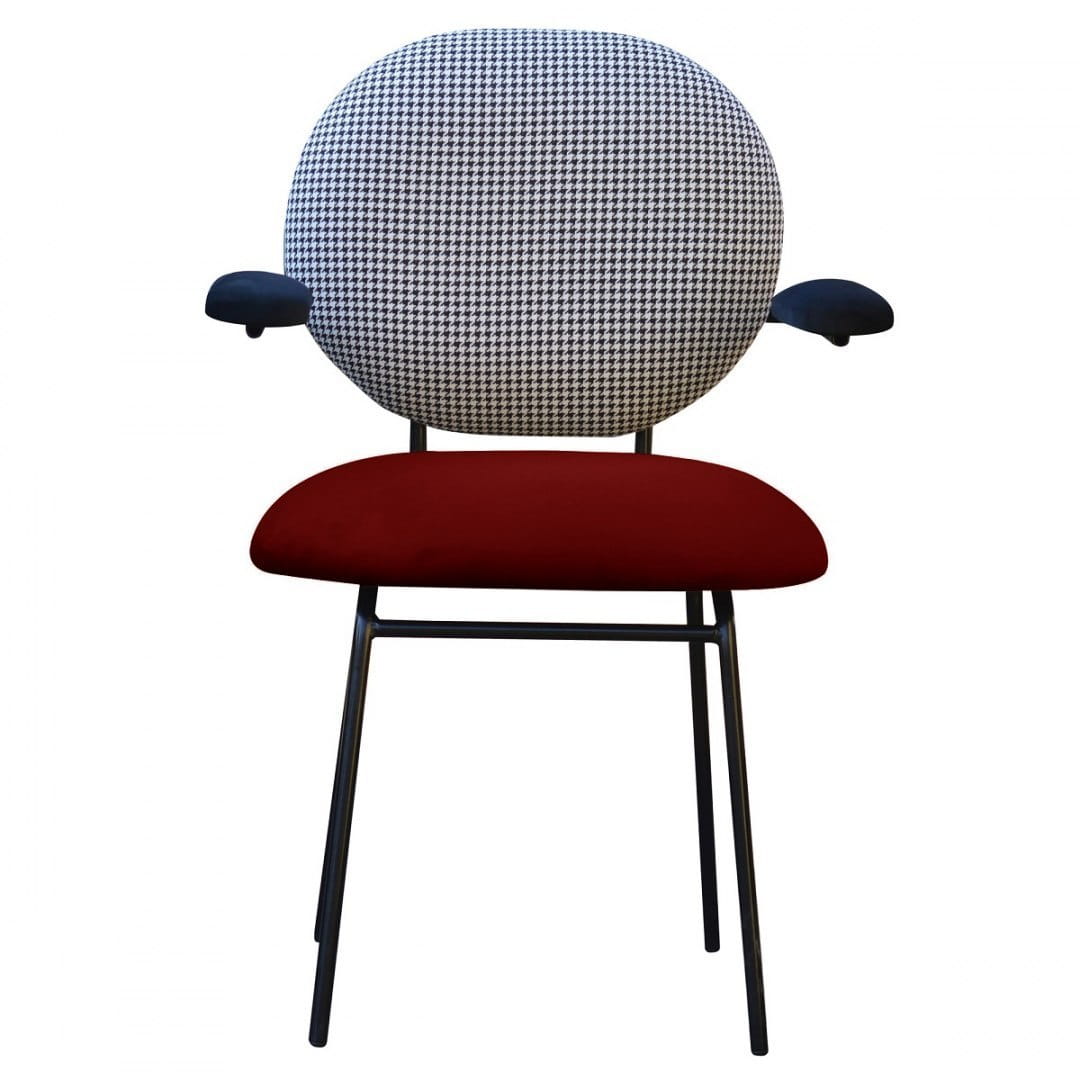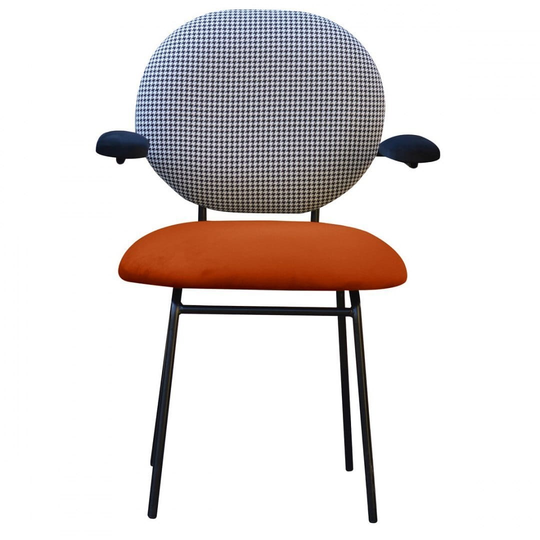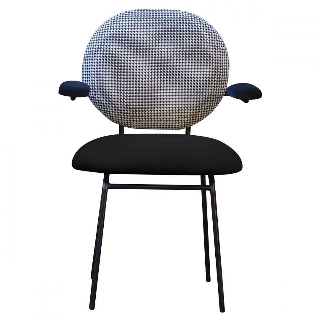 Krzesło Anatol aksamit pepitka z podłokietnikami to stylowy mebel zainspirowany stylem lat 70-tych. Ten osadzony na czarnej, malowanej podstawie mebel ożywi każde wnętrze i nada mu stylu. Obicie zostało wykonane z weluru.