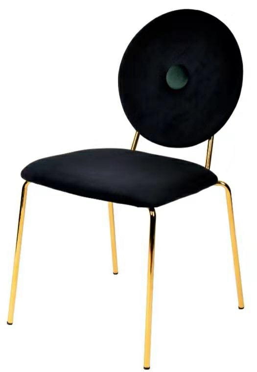 Siedzisko i oparcie tapicerowane miękkim i przyjemnym w dotyku, czarnym welurem nadaje całemu meblowi charakter.