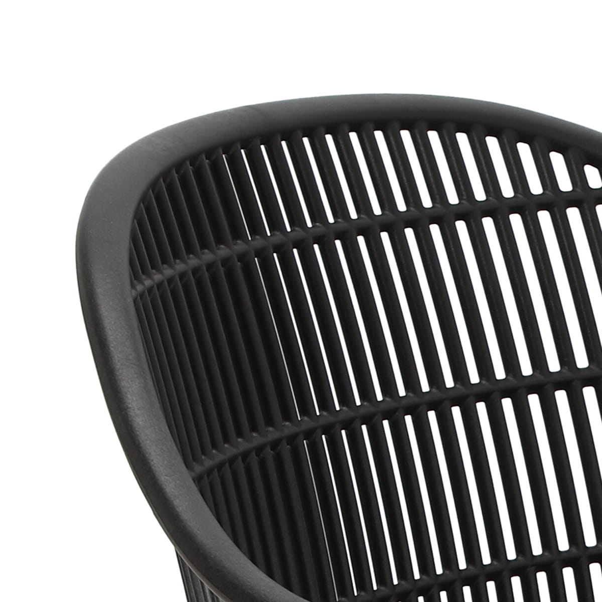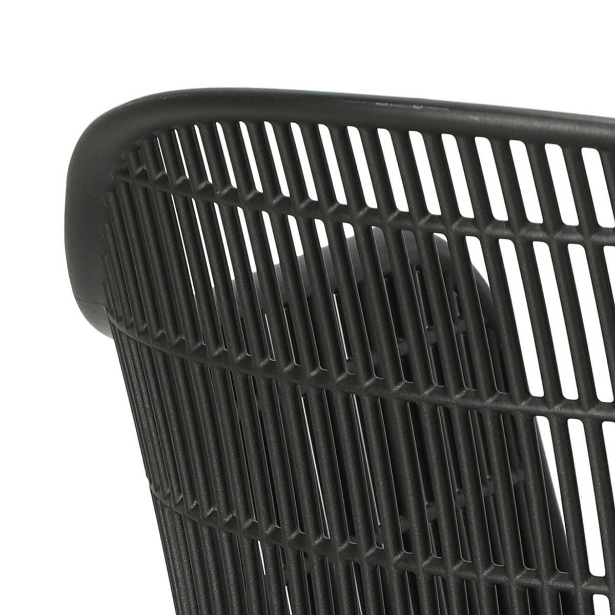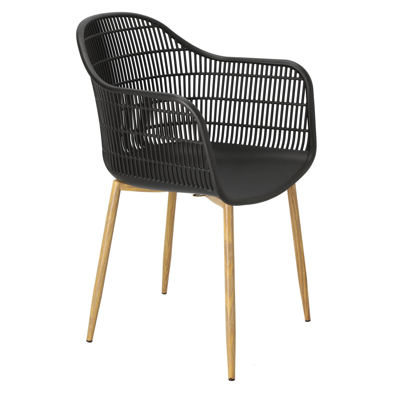 Wyjątkowe siedzisko, podłokietniki i oparcie przypominają siatkę. Podstawa krzesła wykonana została z metalu pokrytego okleiną o strukurze drewna. Wykorzystana w podstawie okleina charakteryzuje się półmatowym wykończeniem.