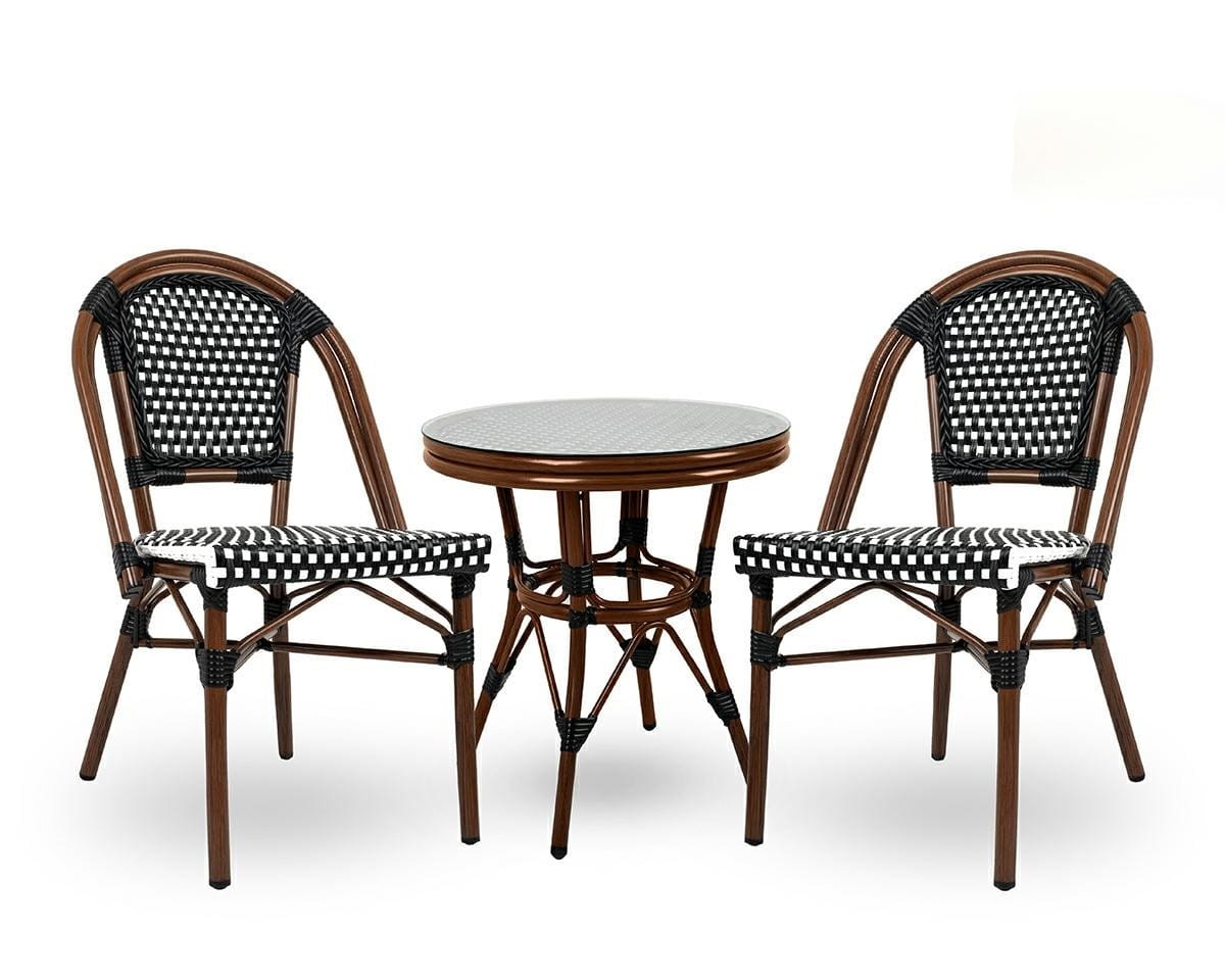 Krzesło CAFE PARIS to ponadczasowy, lekki mebel, który doskonale uzupełni zarówno wnętrze, jak i przestrzeń ogrodu. Wygodne siedzisko z podłokietnikami wykonane jest z aluminium, stali i rattanu w jasnobrązowej tonacji. Inspirowane stylem paryskich kawiarni, te eleganckie krzesła są równie odpowiednie do użytku wewnątrz, jak i na zewnątrz.