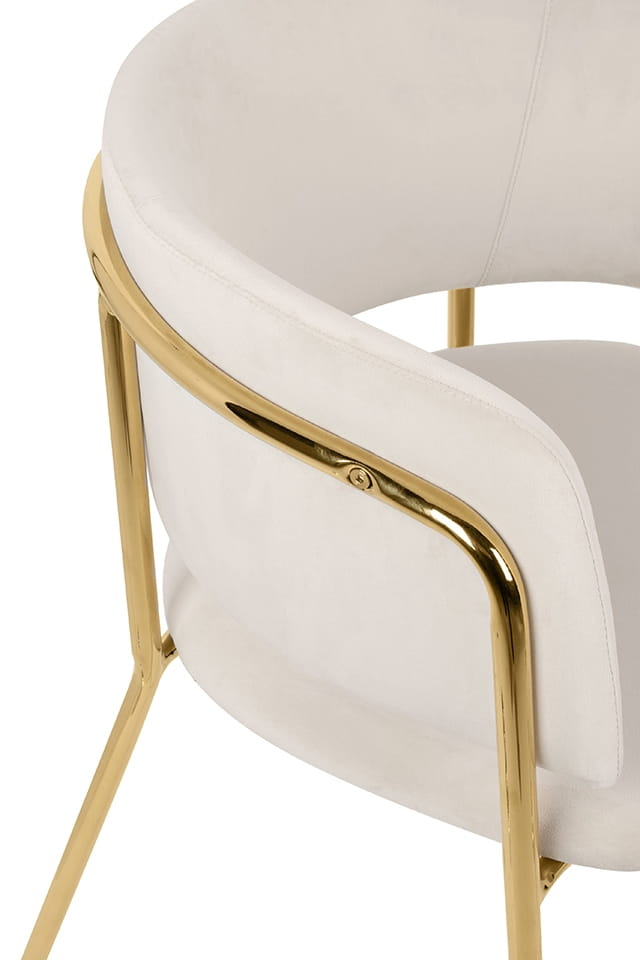 Połączenie elegancji i ekskluzywnego designu. Krzesło Delta to idealna dekoracja salonu, jadalni czy sypialni. Świetnie sprawdzi się w pomieszczeniach w stylu glamour, nowoczesnym i art deco. Beżowy kolor dopasowany do połyskującego złota to oryginalne i stylowe zestawienie, które nada wnętrzu oryginalnego charakteru.