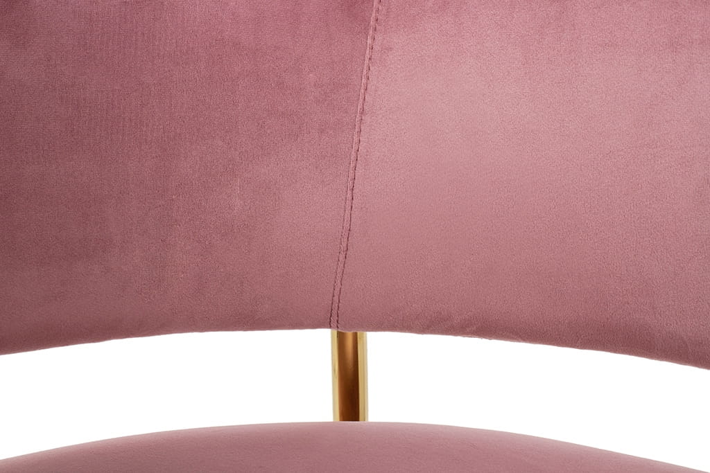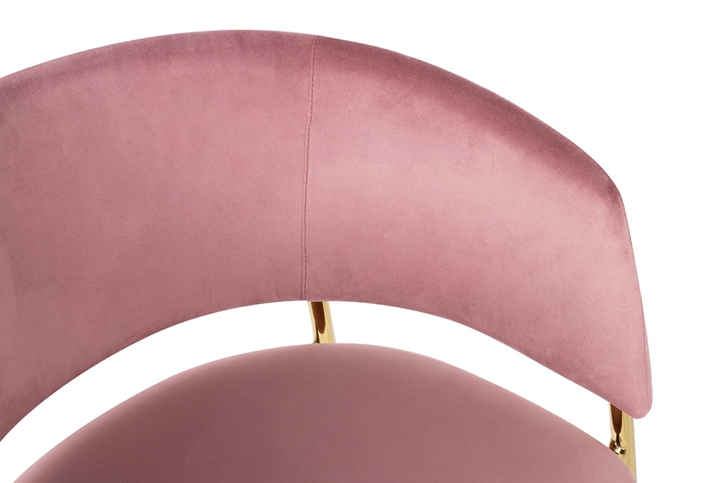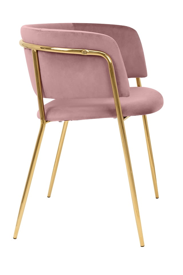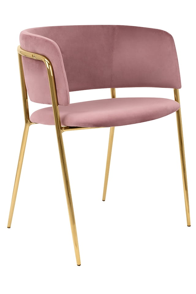 Połączenie elegancji i ekskluzywnego designu. Krzesło Delta to idealna dekoracja salonu, jadalni czy sypialni. Świetnie sprawdzi się w pomieszczeniach w stylu glamour, nowoczesnym i art deco. Różowy kolor dopasowany do połyskującego złota to oryginalne i stylowe zestawienie, które nada wnętrzu oryginalnego charakteru.