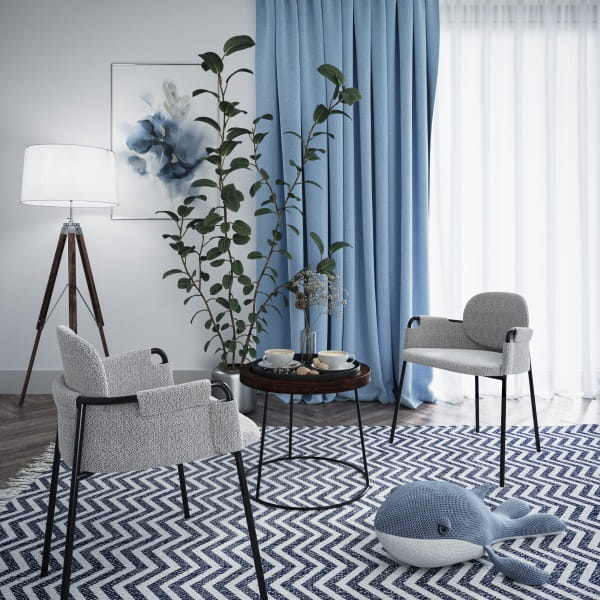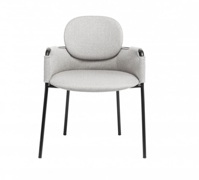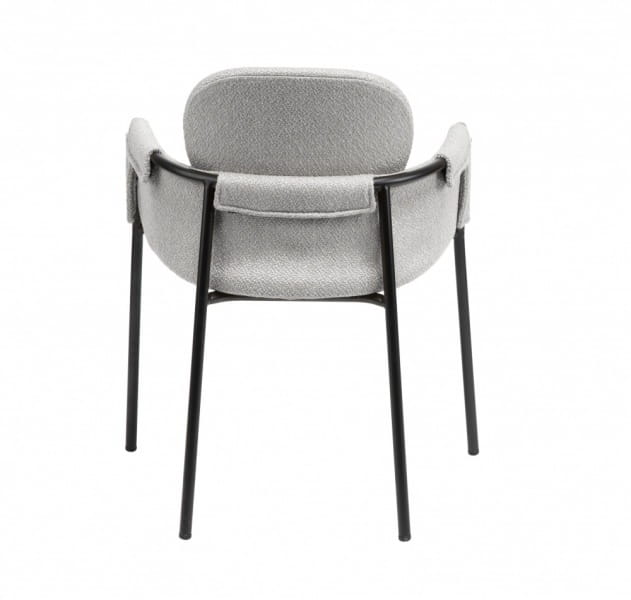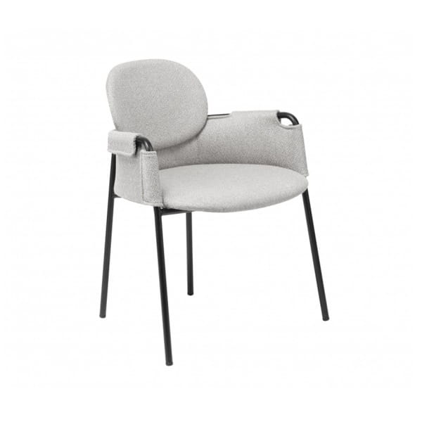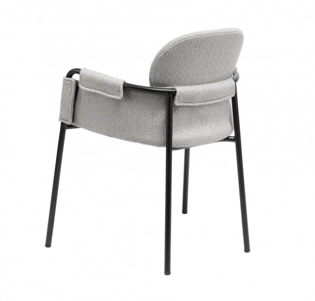 Stelaż krzesła wykonany został z wysokiej jakości metalu w kolorze czarnym, dzięki czemu to nie tylko gustowna ozdoba wnętrza, ale także stabilny i wytrzymały mebel. Całość okrywa szara tkanina o wyraźnej strukturze, która podkreśla designerski charakter krzesła. Owalne siedzisko i oparcie zostało wyprofilowane, co wpływa na wysoki komfort podczas codziennego użytkowania. Krzesło wyposażone zostało również w podłokietniki pokryte tkaniną, dzięki czemu wzrasta nie tylko wygoda, ale również odciążenie stawów.