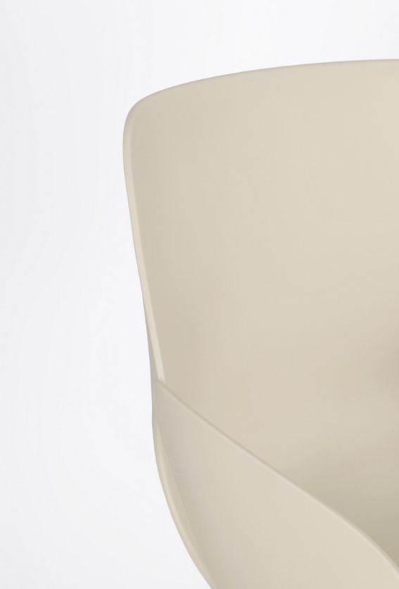 Krzesło Lennon to projekt, który przyciąga wzrok odważną, futurystyczną formą i spokojną, neutralną kolorystyką. Siedzisko o ergonomicznym, kubełkowym kształcie zostało wykonane z wysokiej jakości polipropylenu (PP) w subtelnym, beżowym odcieniu. Materiał ten zapewnia nie tylko doskonałą trwałość i łatwość w pielęgnacji, ale również pozwala na uzyskanie płynnych, organicznych linii, które definiują nowoczesny charakter mebla.