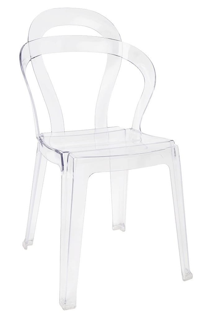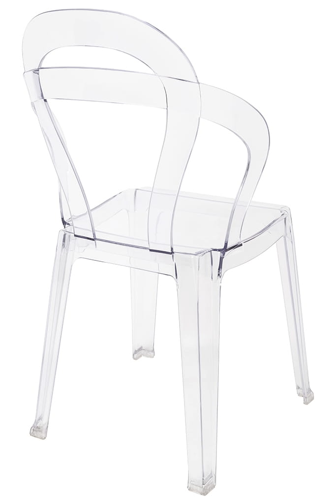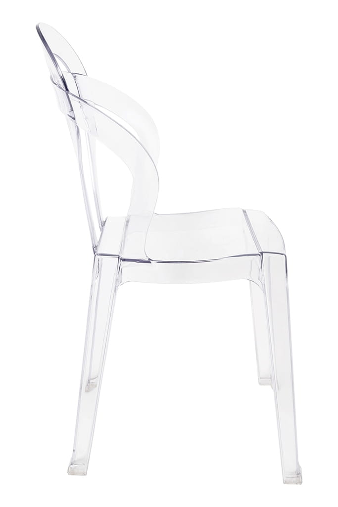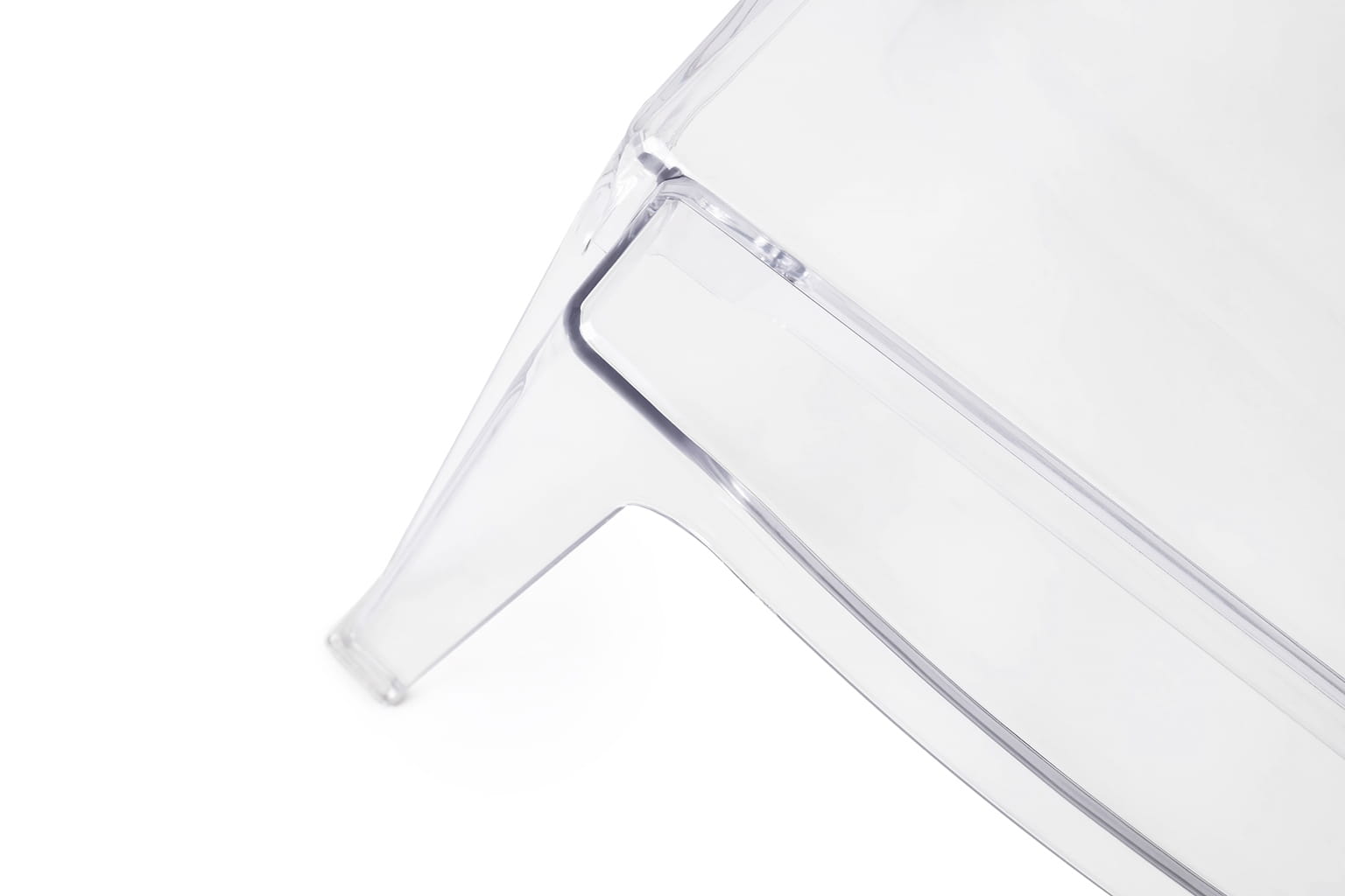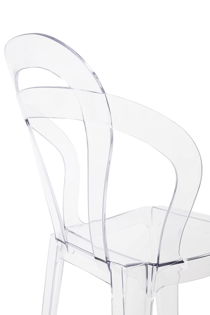 Do produkcji krzesła wykorzystano wytrzymały, transparentny poliwęglan, dzięki czemu mebel optycznie nie zabiera dużo miejsca.