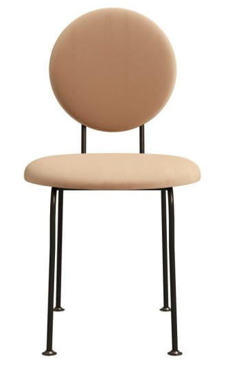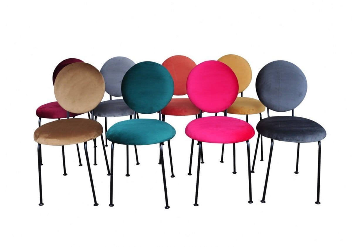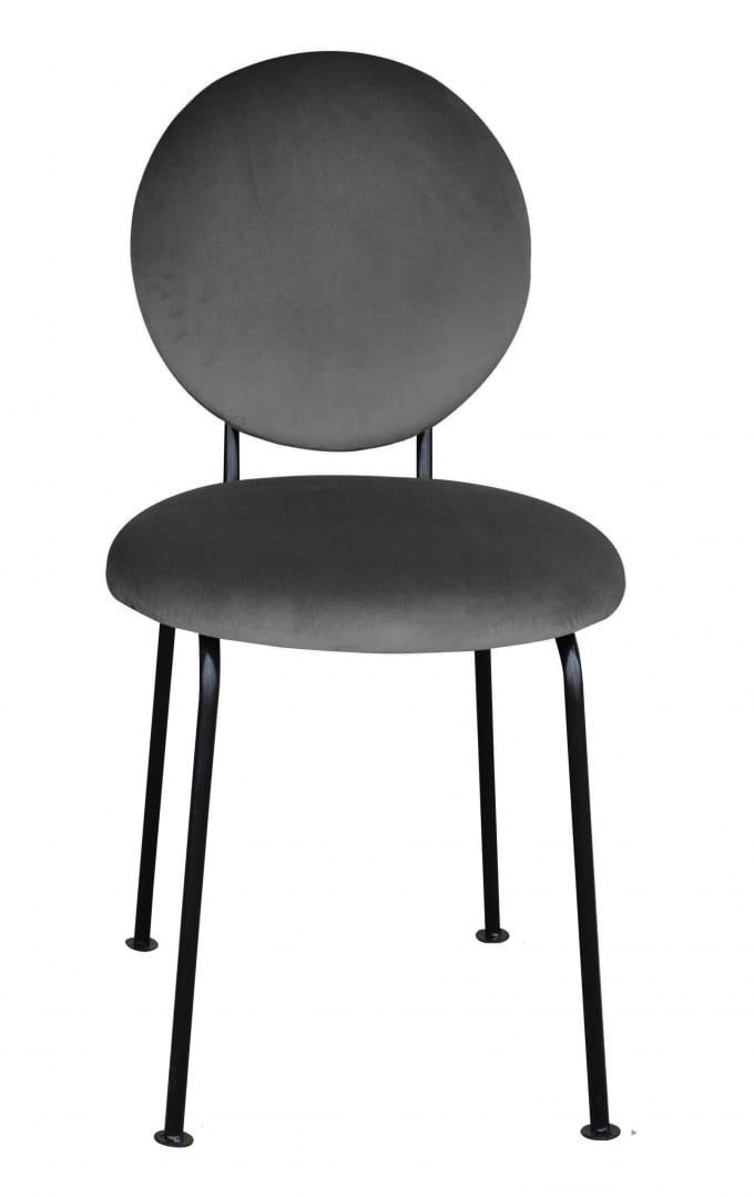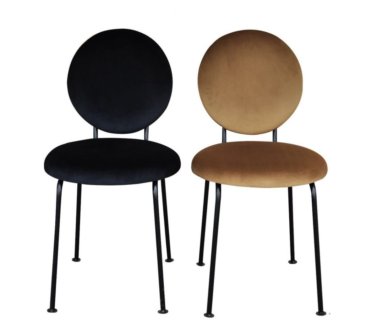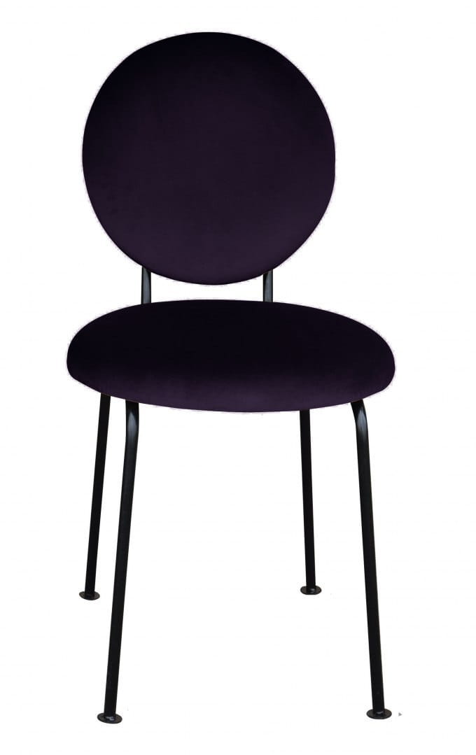 Krzesło z kolekcji 2018. Inspiracją do powstania projektu był medalion w stylu Ludwika XVI oraz wzornictwo lat 70-tych. Obicie zostało wykonane z weluru. Podstawę zrobiono z malowanego proszkowanego czarno metalu.