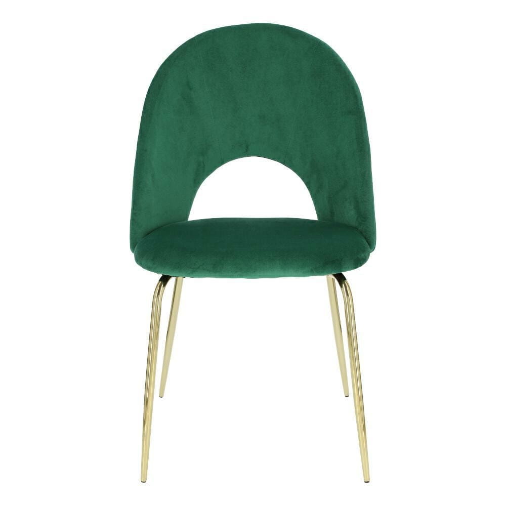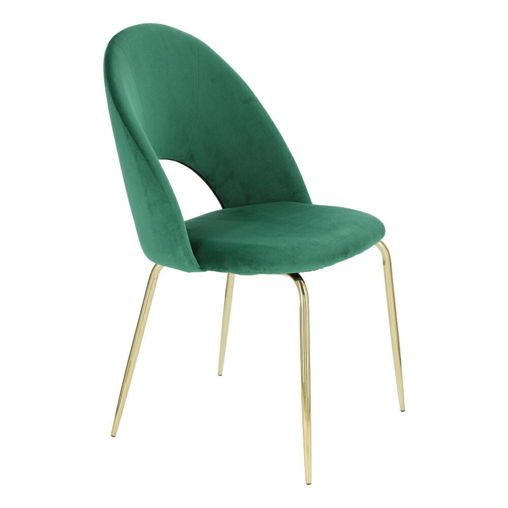 Krzesło Solie to nowoczesne wydanie stylu art deco. Doskonała propozycja dla osób ceniących wygodę, a jednocześnie estetyczny wygląd. Oparcie krzesła dzięki designerskiemu wycięciu wydaje się lekkie, a wyprofilowane boki oparcia przytulnie otulają nasze ramiona. Siedzisko składa się ze sklejki na której położono gąbkę oraz obito całość miękką welurową zieloną tkaniną.