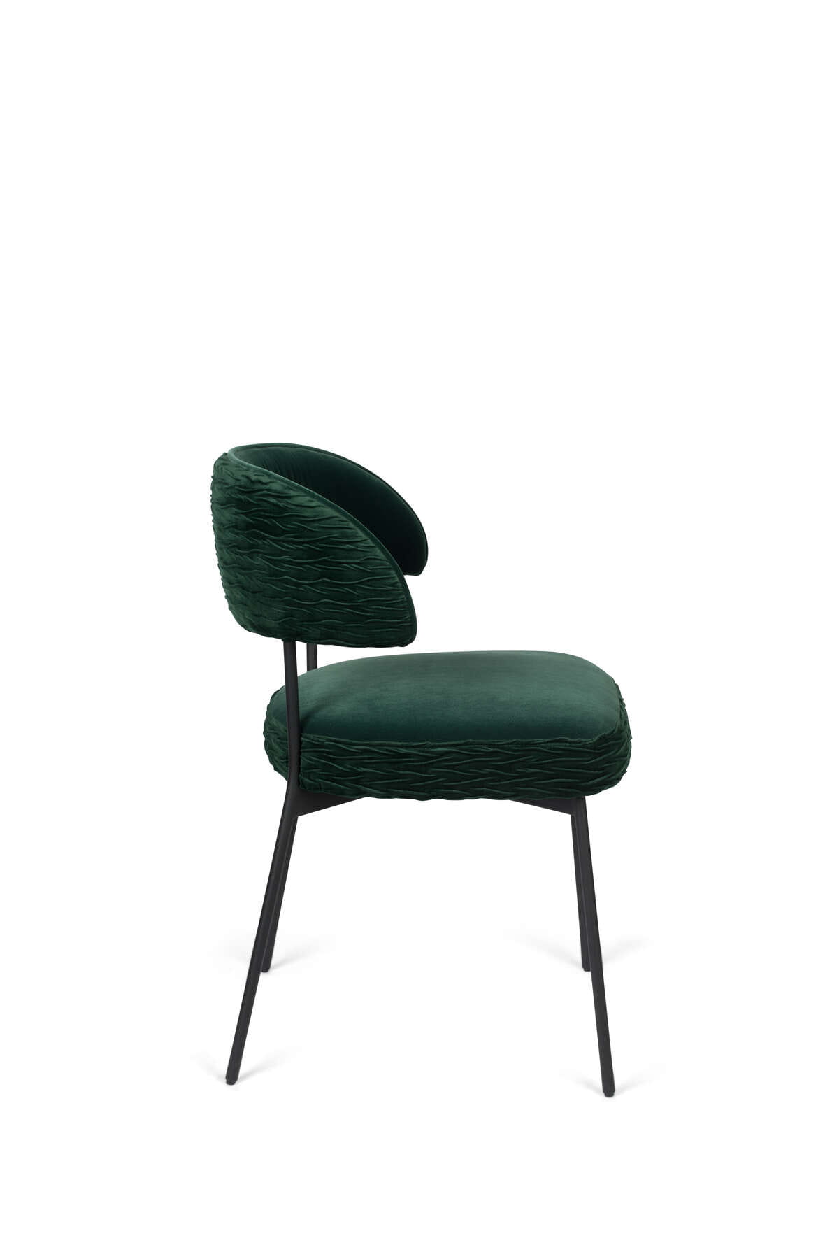 Proste, malowane proszkowo na czarno nogi łączą się z aksamitną tapicerką, zaprojektowaną tak, aby nadać szczególny charakter codziennej okazji. Doskonałe połączenie modnej tkaniny i ponadczasowej stylistyki. Idealnie pasuje do wnętrz nowoczesnych i klasycznych. Krzesło jest bardzo wygodne - zapewni wysoki komfort podczas użytkowania. Świetnie będzie prezentować się również zestawione z elegancką toaletką w sypialni.