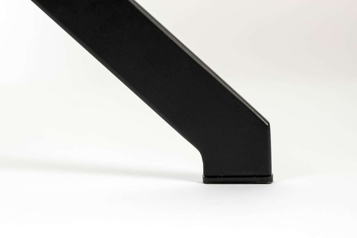 Mixed fabric (81% polyester, 19% acrylic) upholstery. PU foam filling. Eucalyptus plywood shell. Black powder coated cold rolled steel frame with PE plastic gliders.