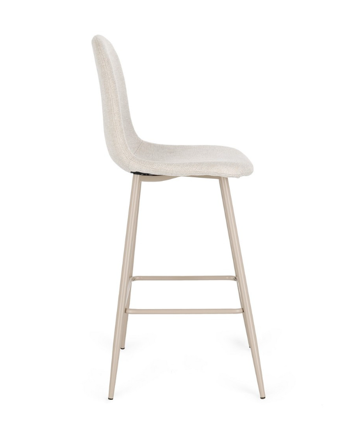 Całość pokryto wytrzymałą tkaniną poliestrową w subtelnym i niezwykle modnym odcieniu jasnej szarości, który z łatwością komponuje się z różnorodnymi aranżacjami wnętrz – od nowoczesnych po klasyczne. Lekkości i nowoczesnego charakteru nadają meblowi nogi wykonane ze stali malowanej proszkowo. Dzięki ergonomicznemu kształtowi oraz optymalnej wysokości siedziska, model Irelia jest doskonałym wyborem zarówno do wysp kuchennych, jak i eleganckich kącików barowych.
